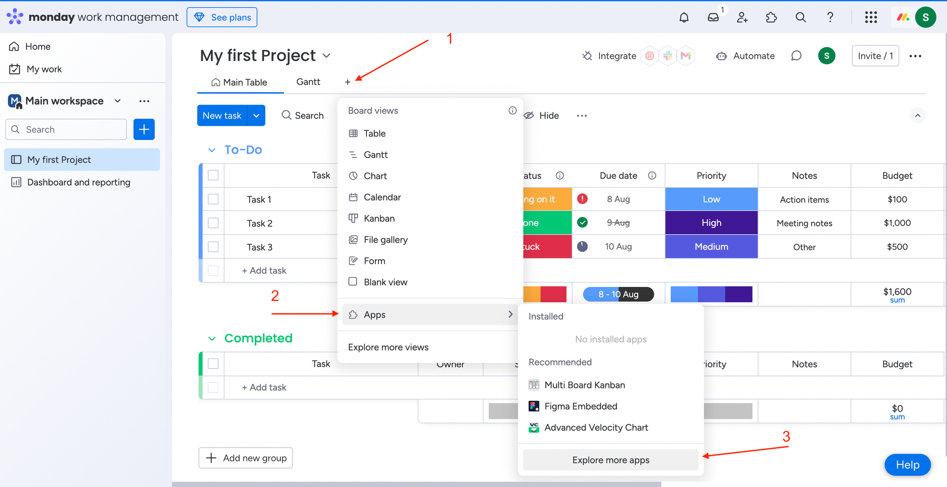 Plan with Gantt & Workload: Use Gantt charts for detailed project timelines and workload planning to manage team capacity effectively.