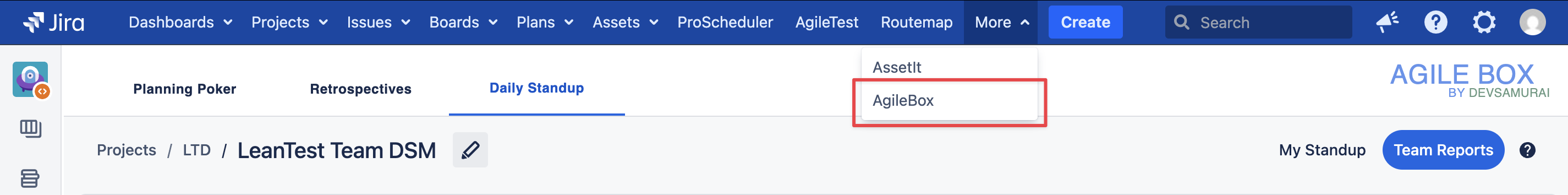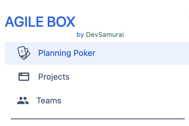 Projects: Browse all projects on your instance. Here you can see the number of planning poker sessions and retrospective meetings for each project. Then, quickly access the AgileBox of any project from here.