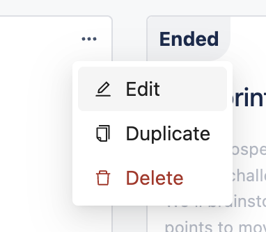 Only meeting creators can modify the created meetings by clicking the ellipse symbol with these options: Edit, Duplicate, and Delete