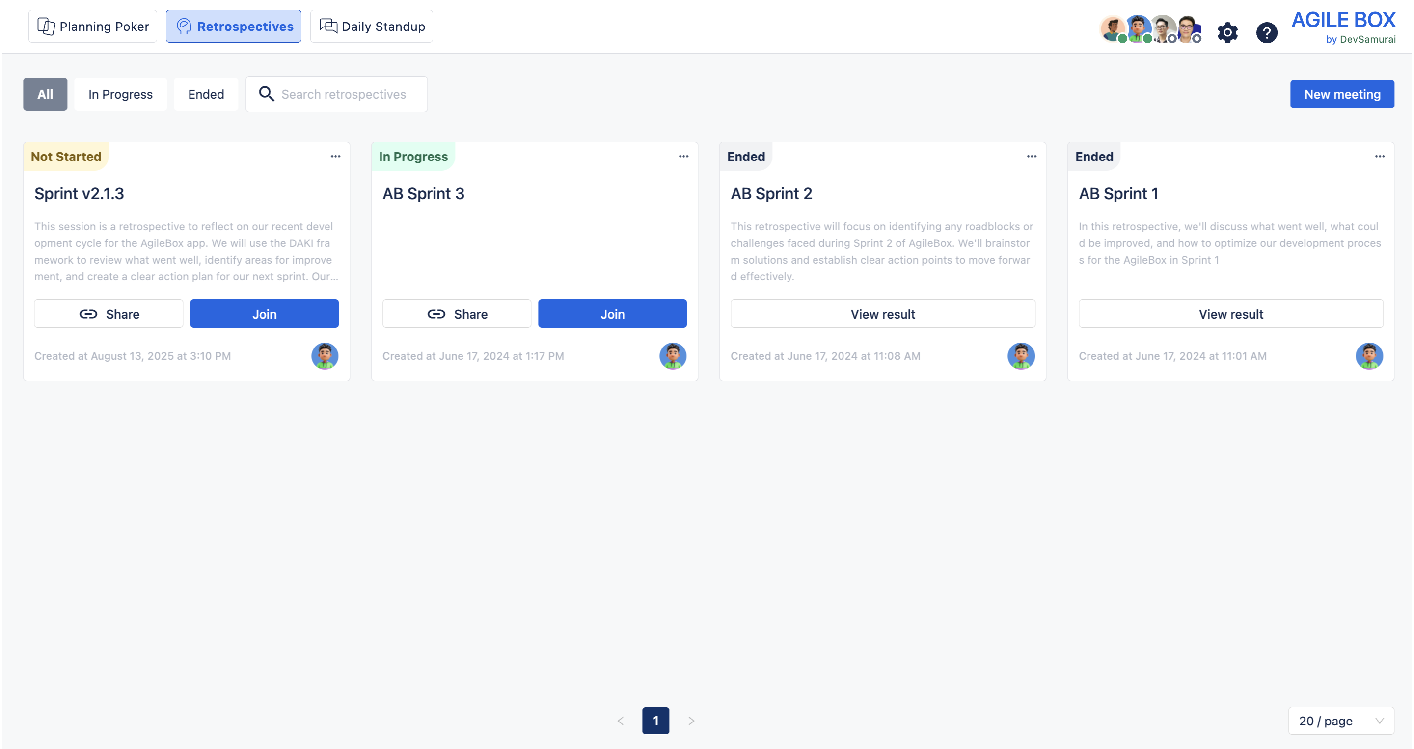 Learn how to create and manage retrospective meetings in AgileBox.