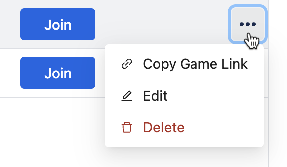 Access via shareable link: On the Game tab, you can get the game link by going to the ellipsis symbol of each game. Use this link to quickly access the game screen.