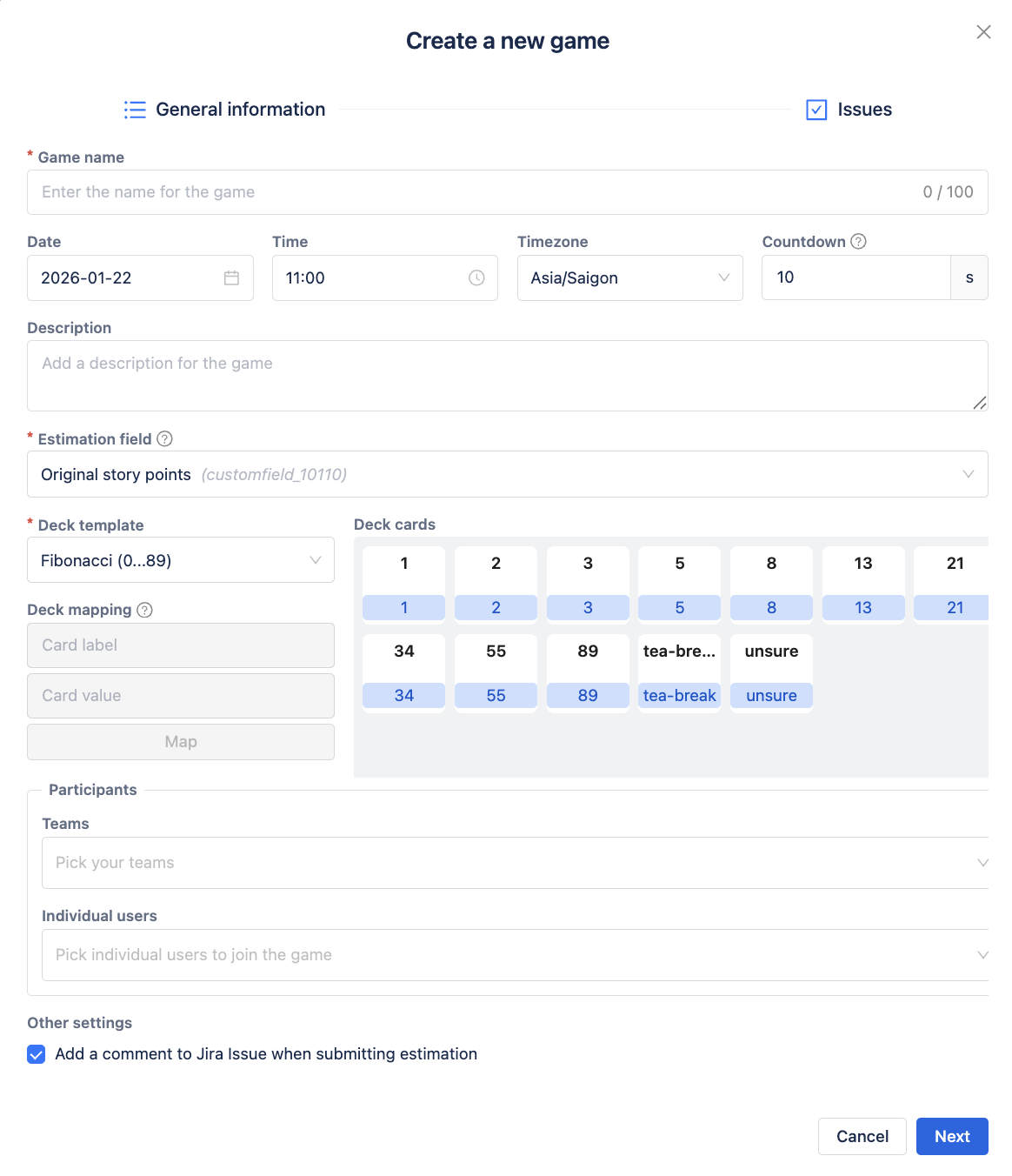 Step 2: Configure the planning poker game