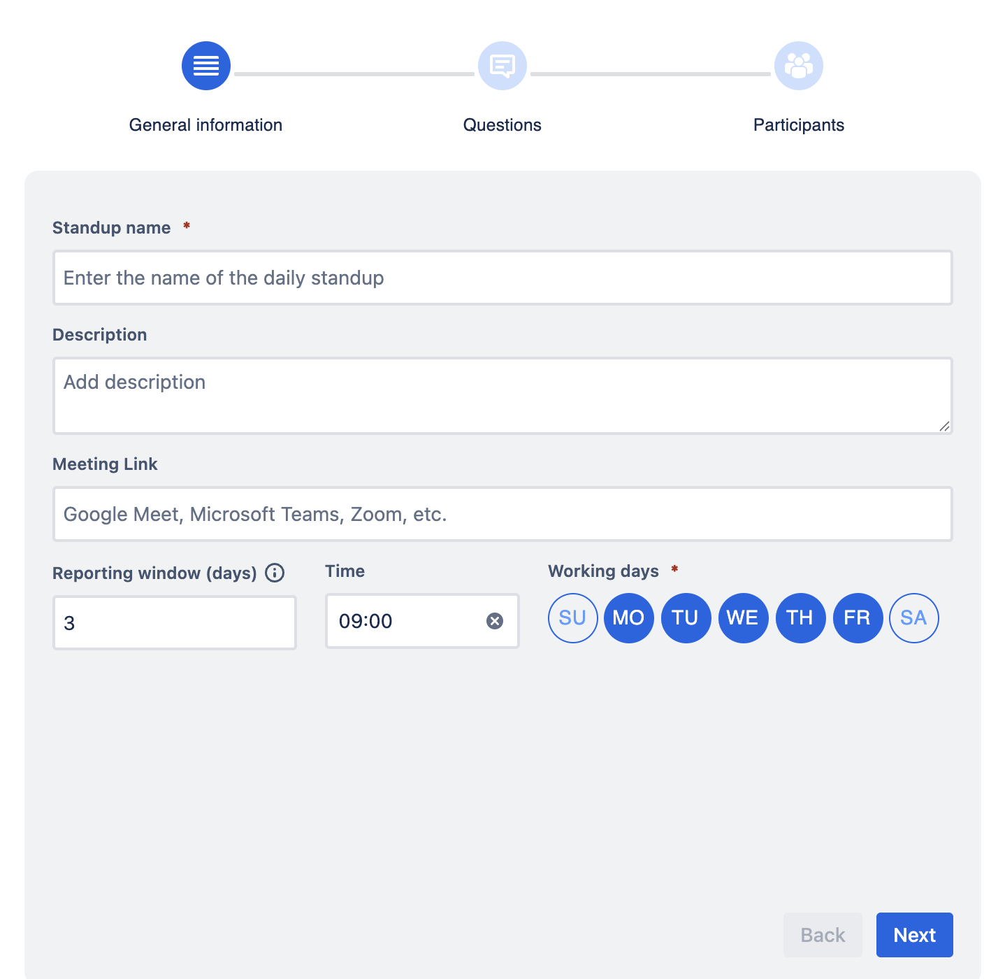Daily Stand-Up Report: Keep your team aligned, track progress, and check in on your team's daily mood.