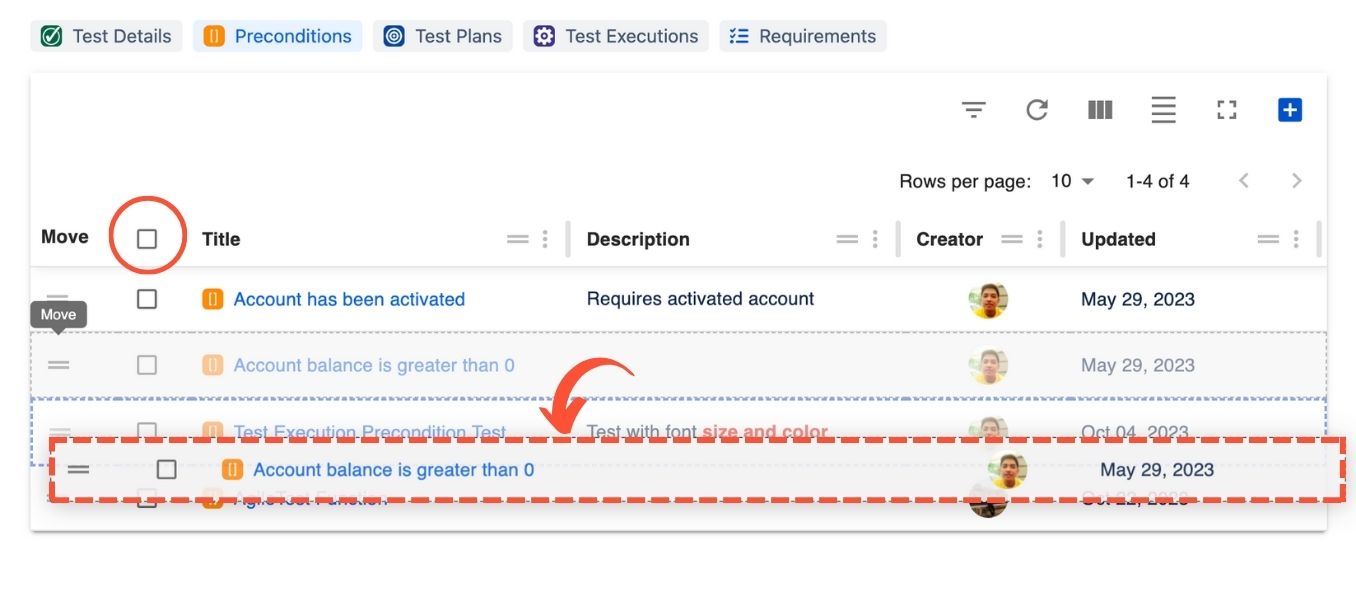 Easily organize and prioritize preconditions with a drag-and-drop feature, ensuring a logical sequence in your testing process.