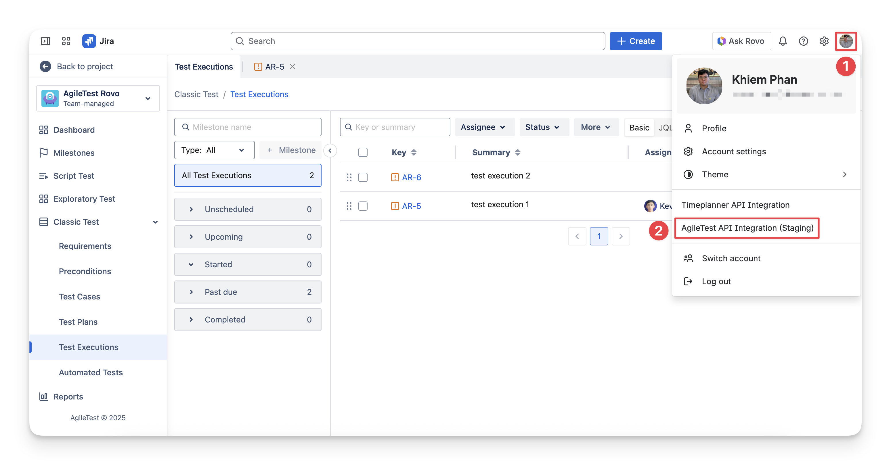 Choose “AgileTest API Integration”.