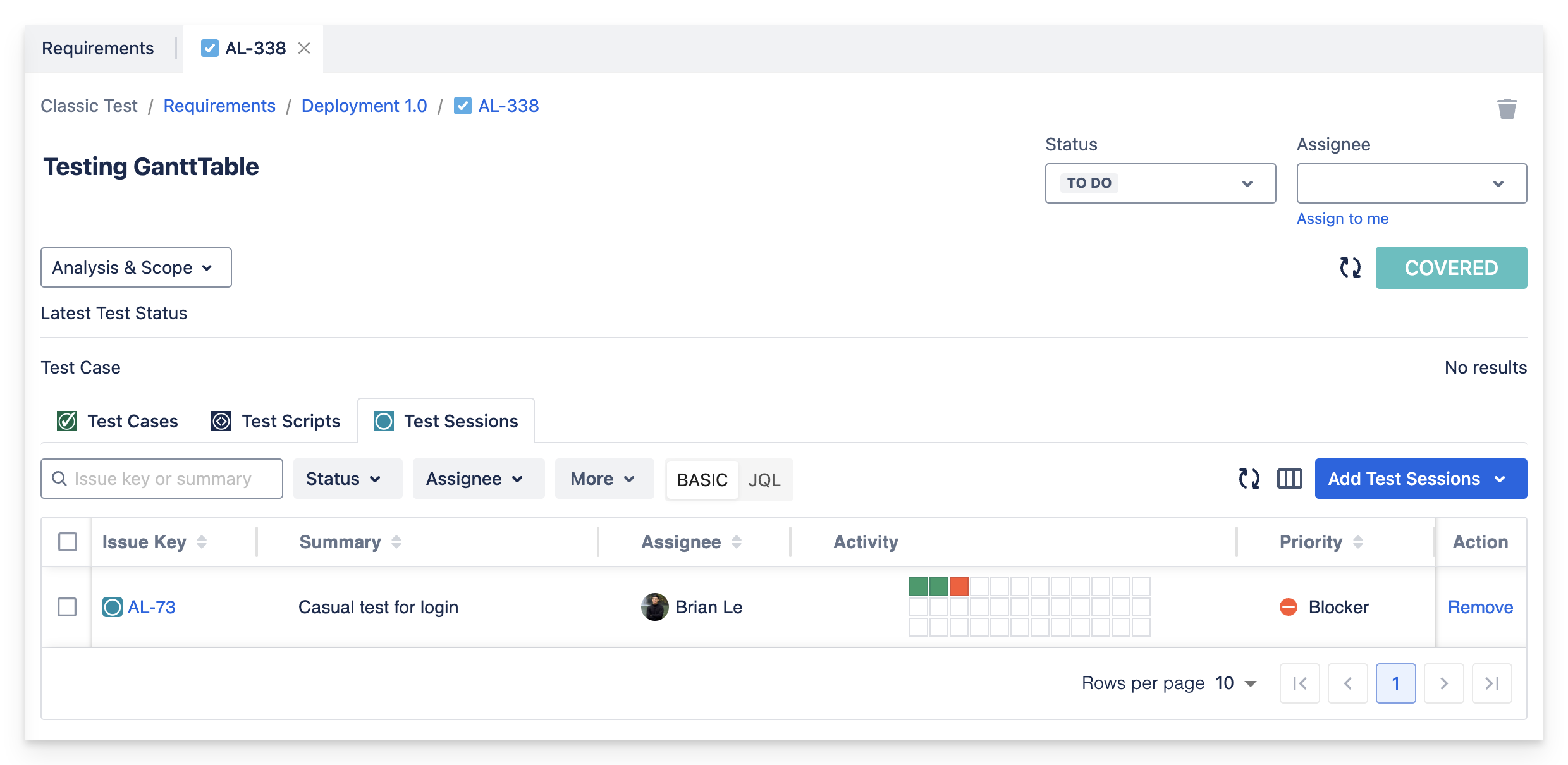If a test session is linked to a requirement, it will update the requirement’s run status to COVERED , even if there’s no specific test case or test script linked to it.