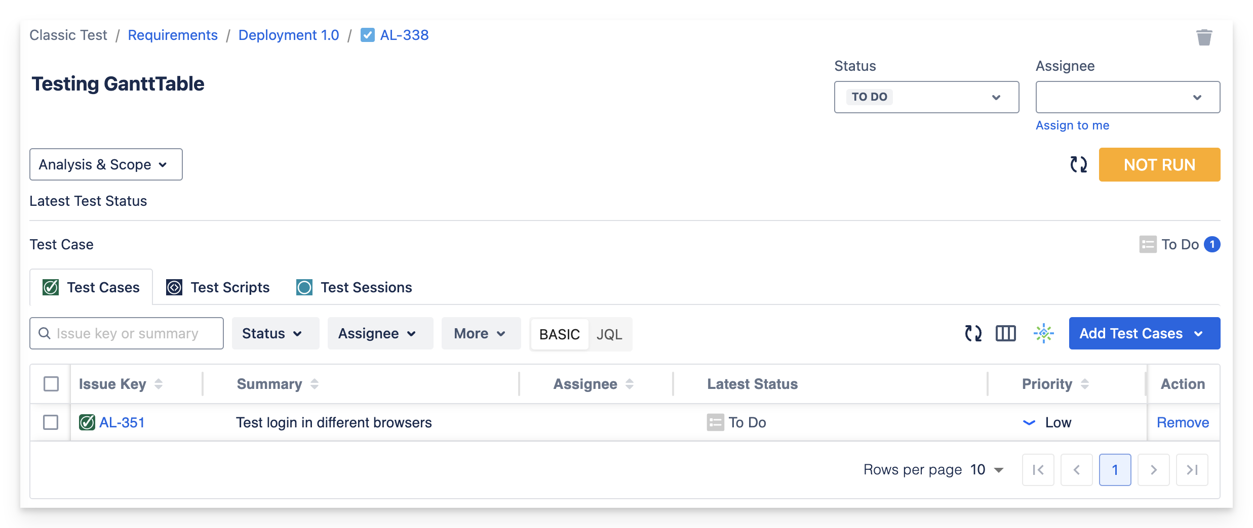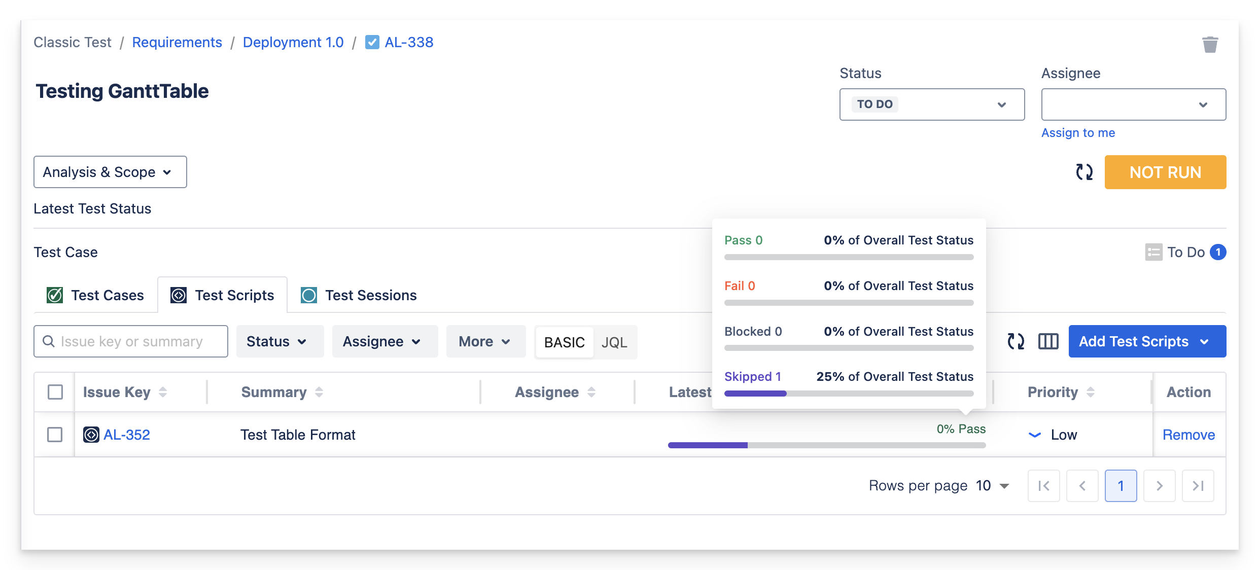 The TO DO status does not impact the requirement’s run status; if the test is marked as TO DO and there is no other run status, the requirement will be marked as NOT RUN.