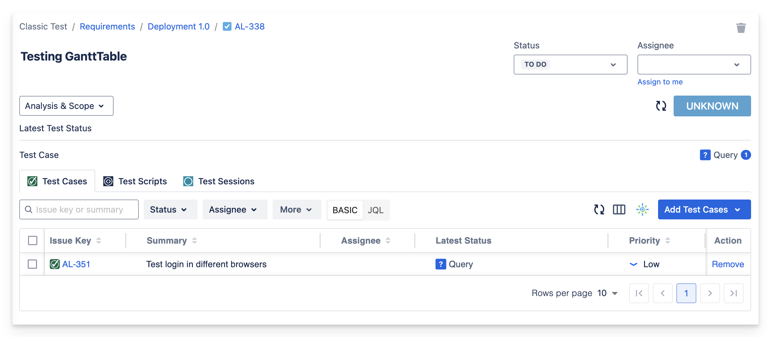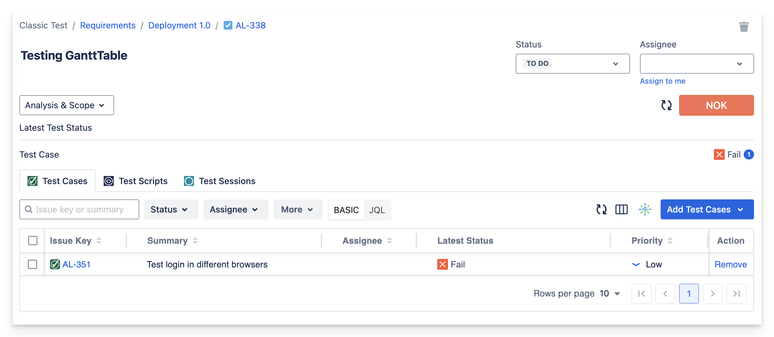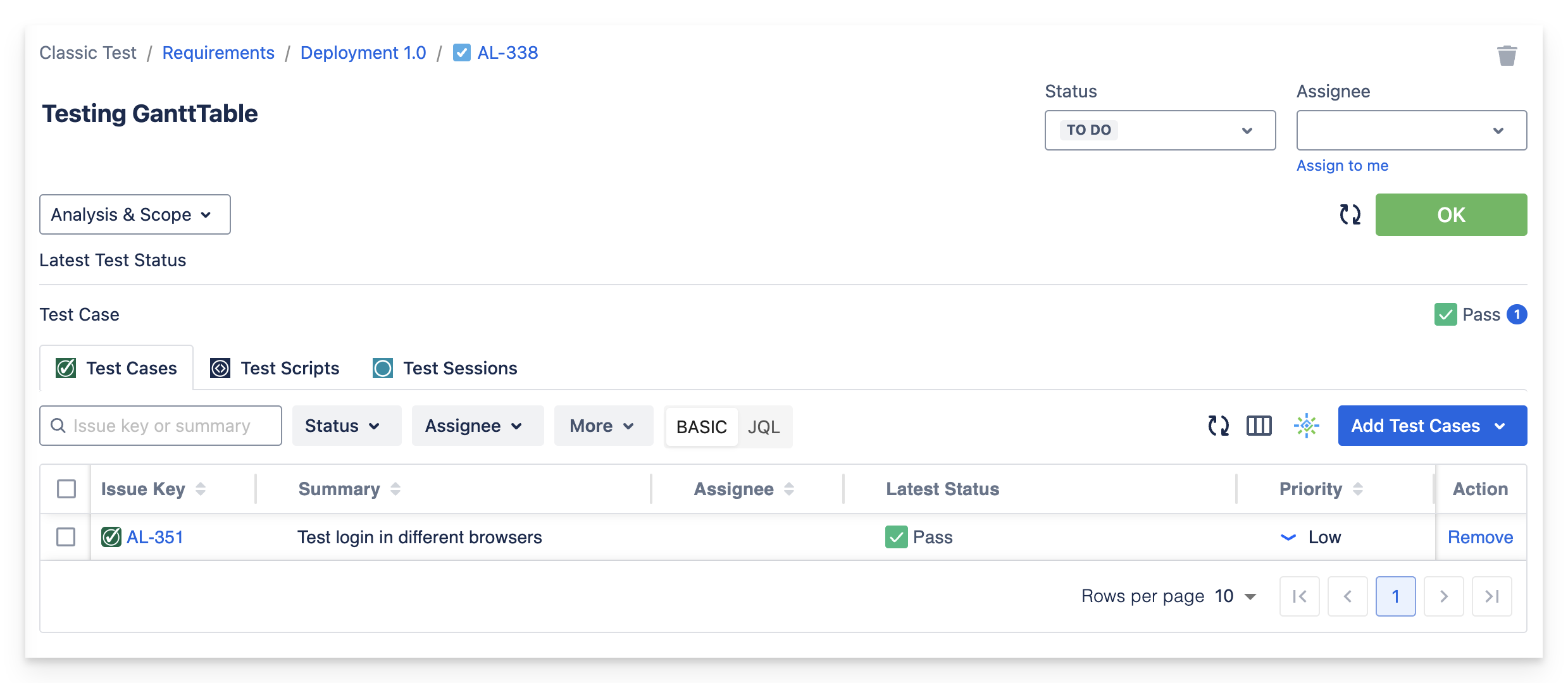 Test Cases | Test Scripts | Test Sessions | Requirement run status |