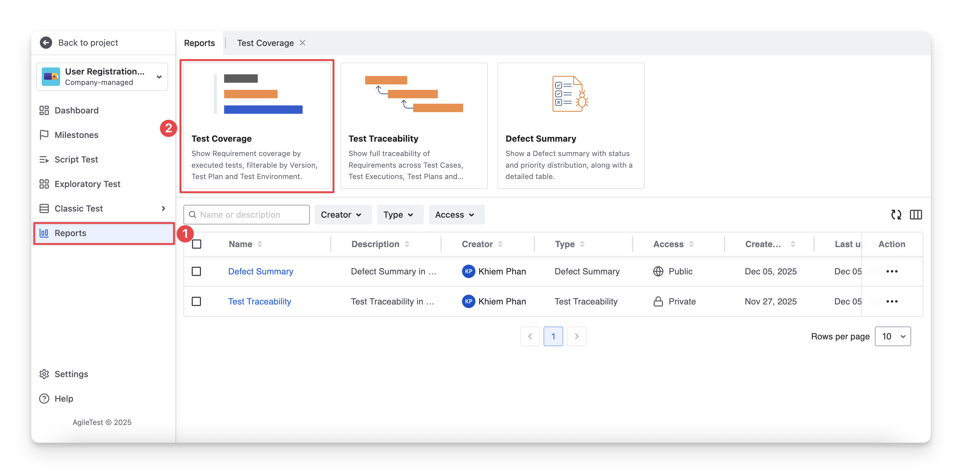 Select the “Test Coverage” report type.