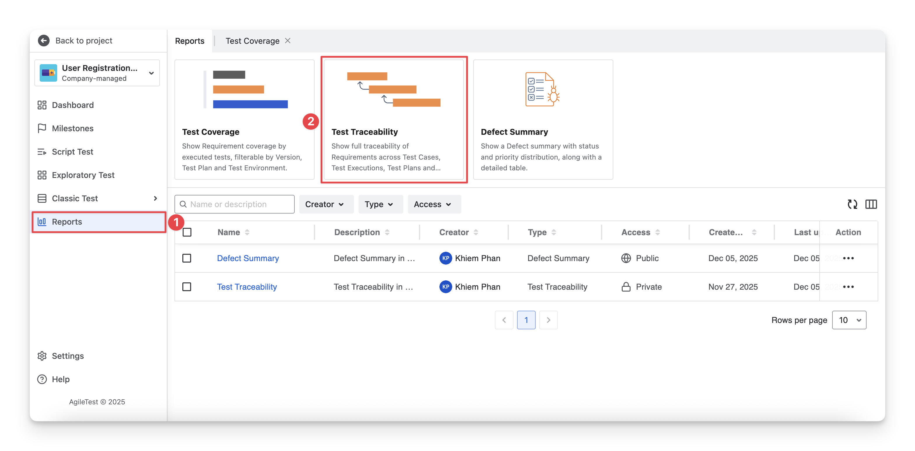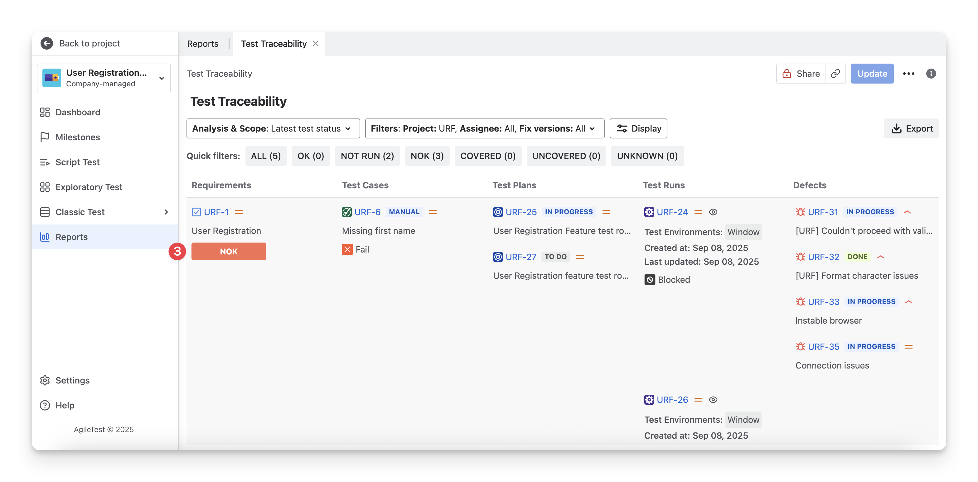 Select the “Test Traceability” report type.