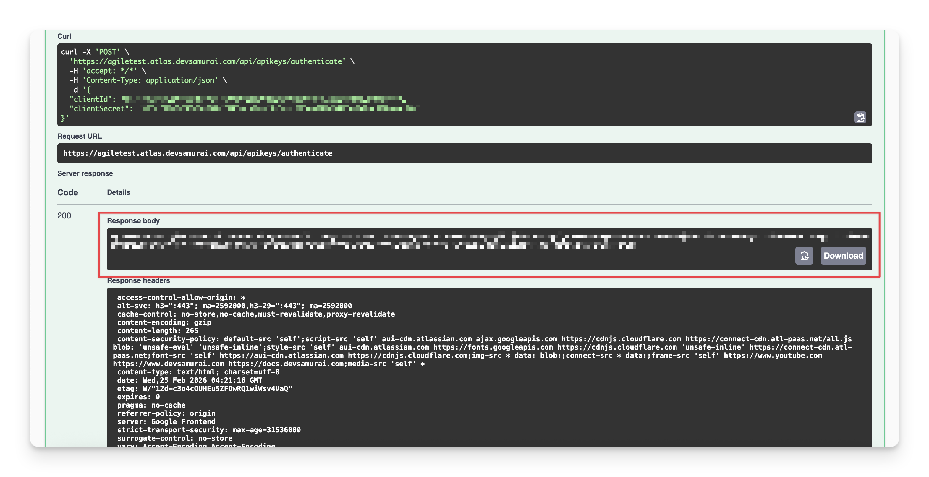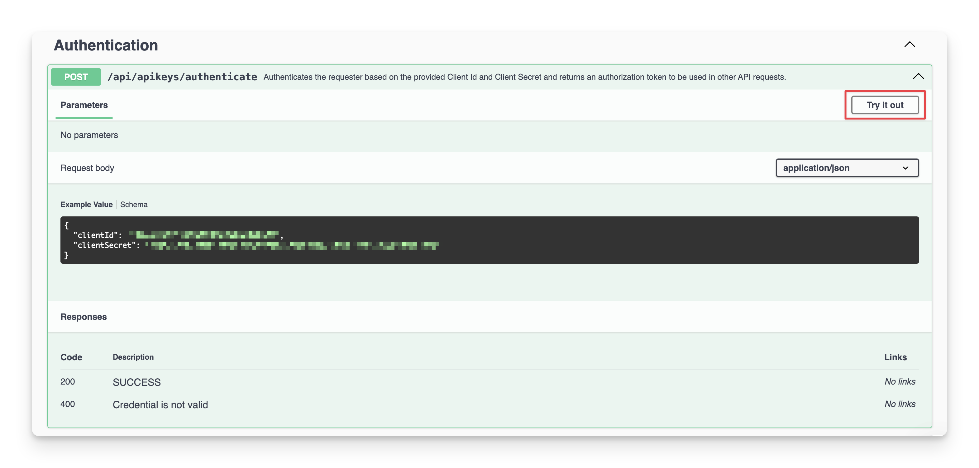 Click “Try it out” in the Authentication section.