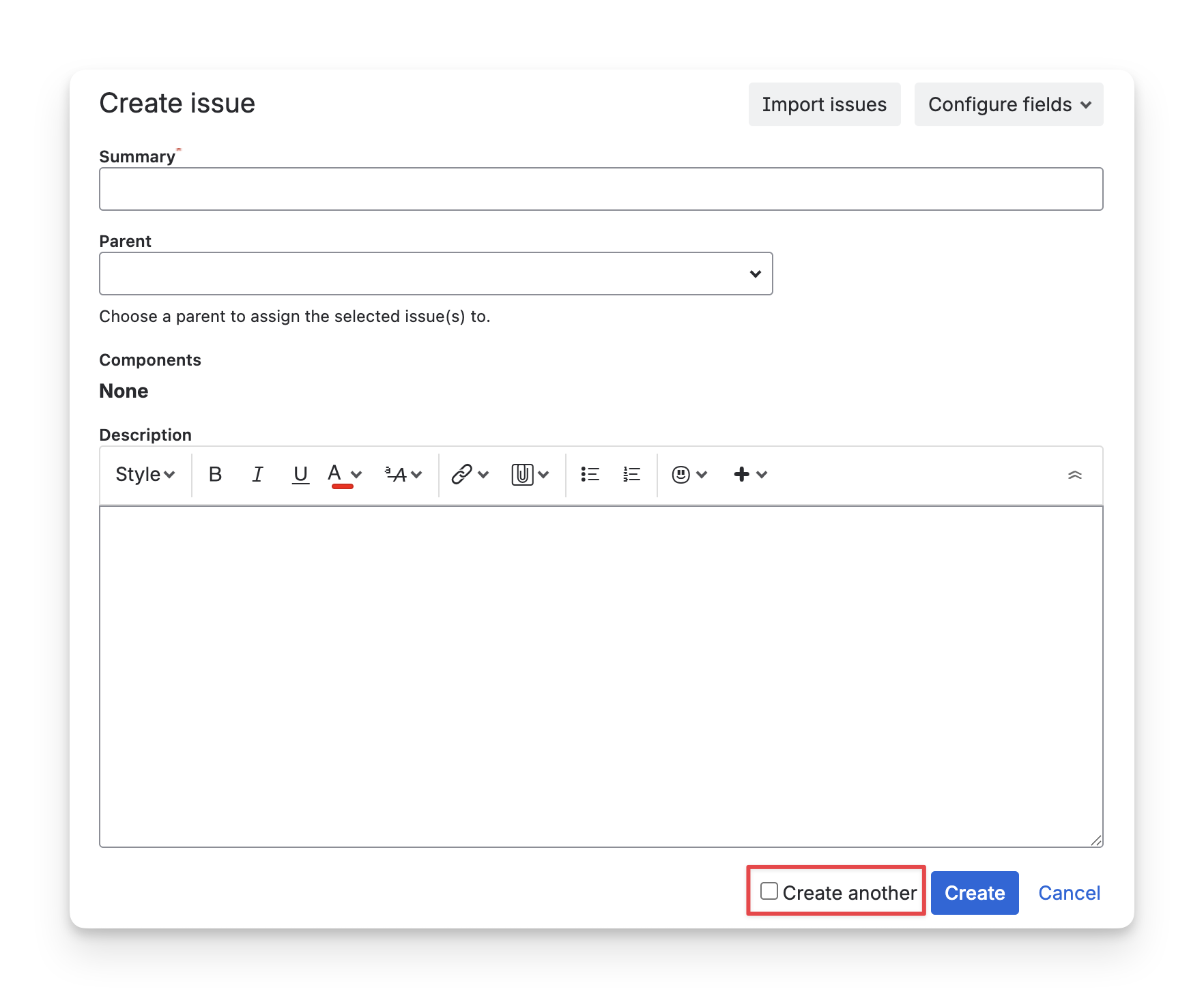 Select the “Create” button in the toolbar.