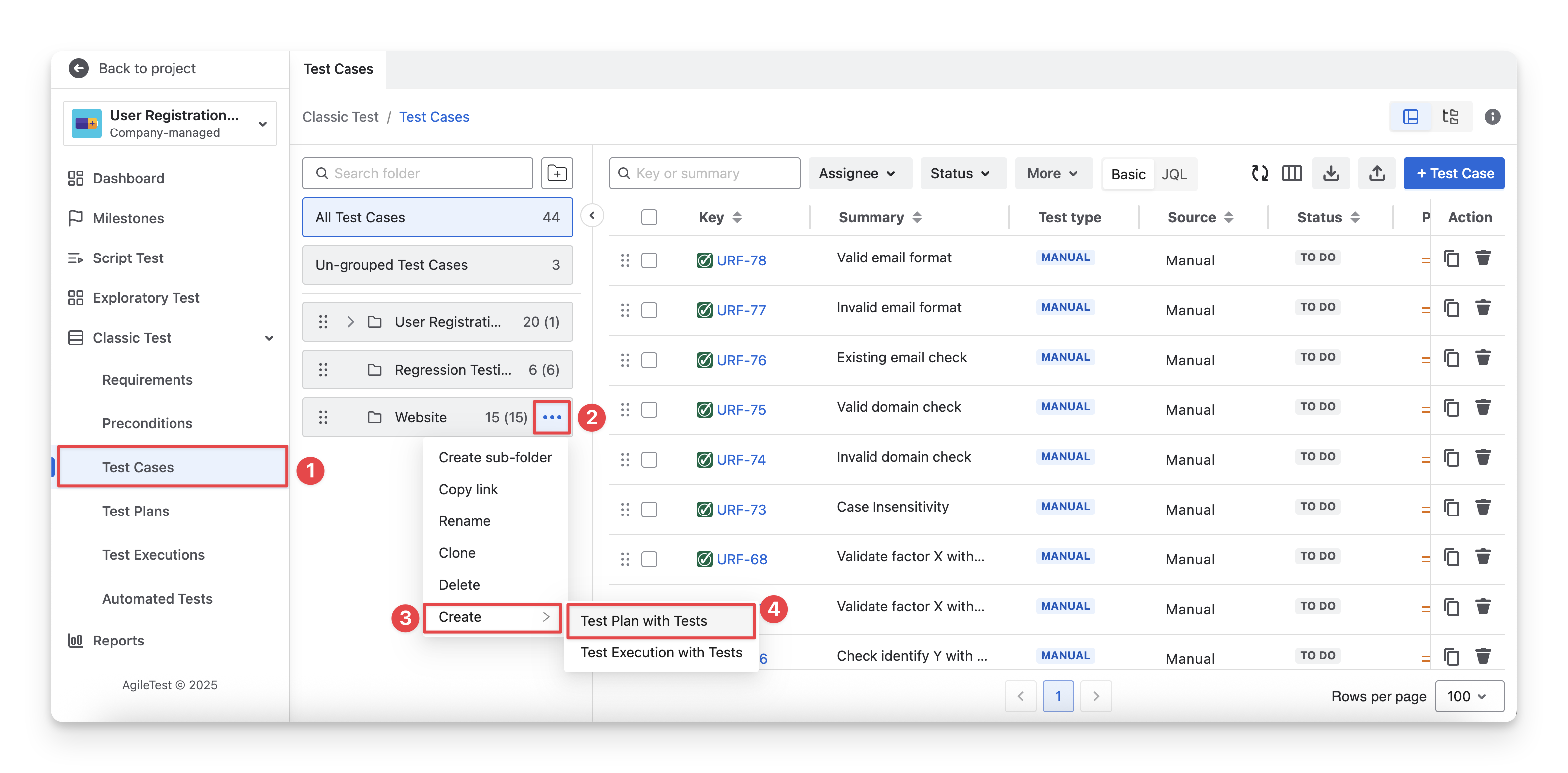 2. Create Test Plans in the Test Cases section