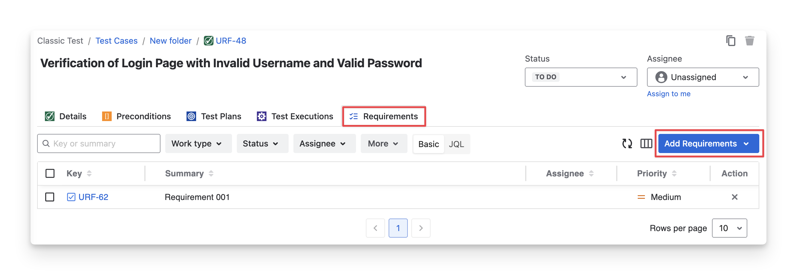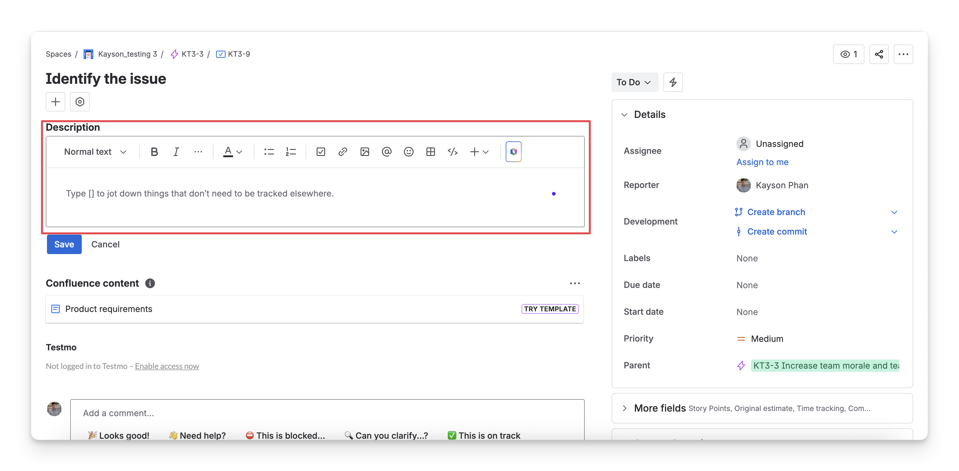 In this case, you should (1) click on the Requirement issue key → fill in the description details.