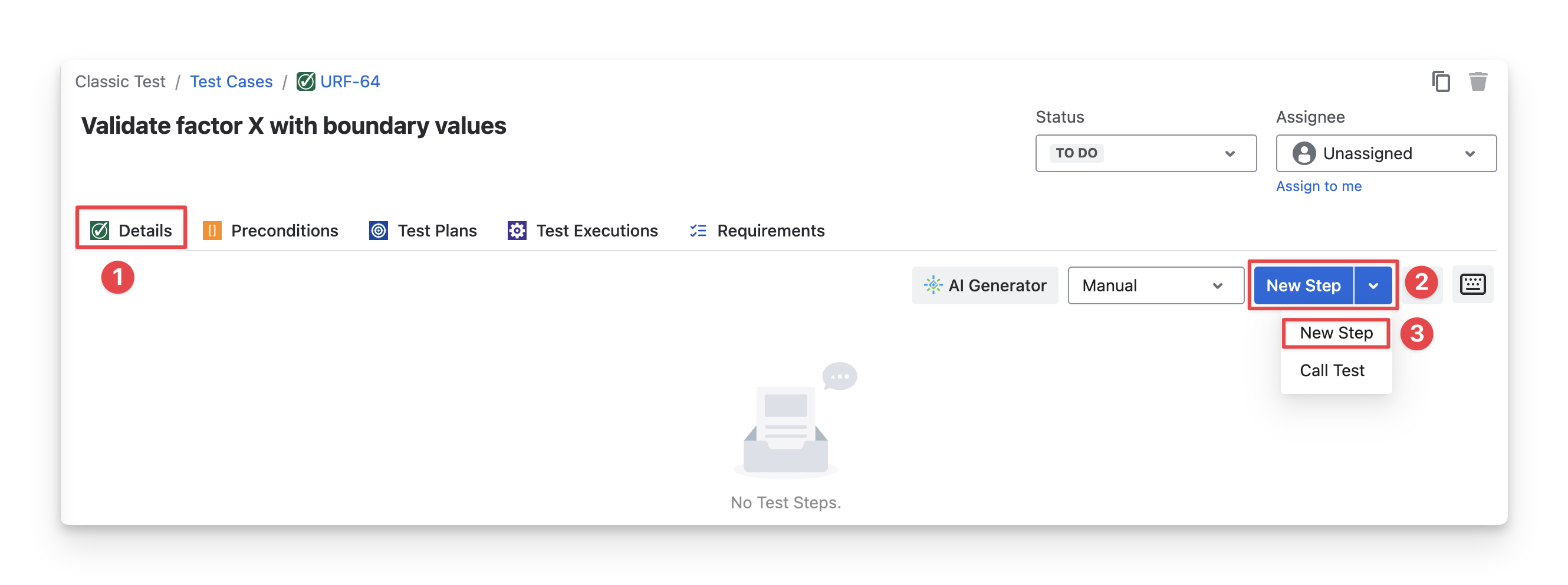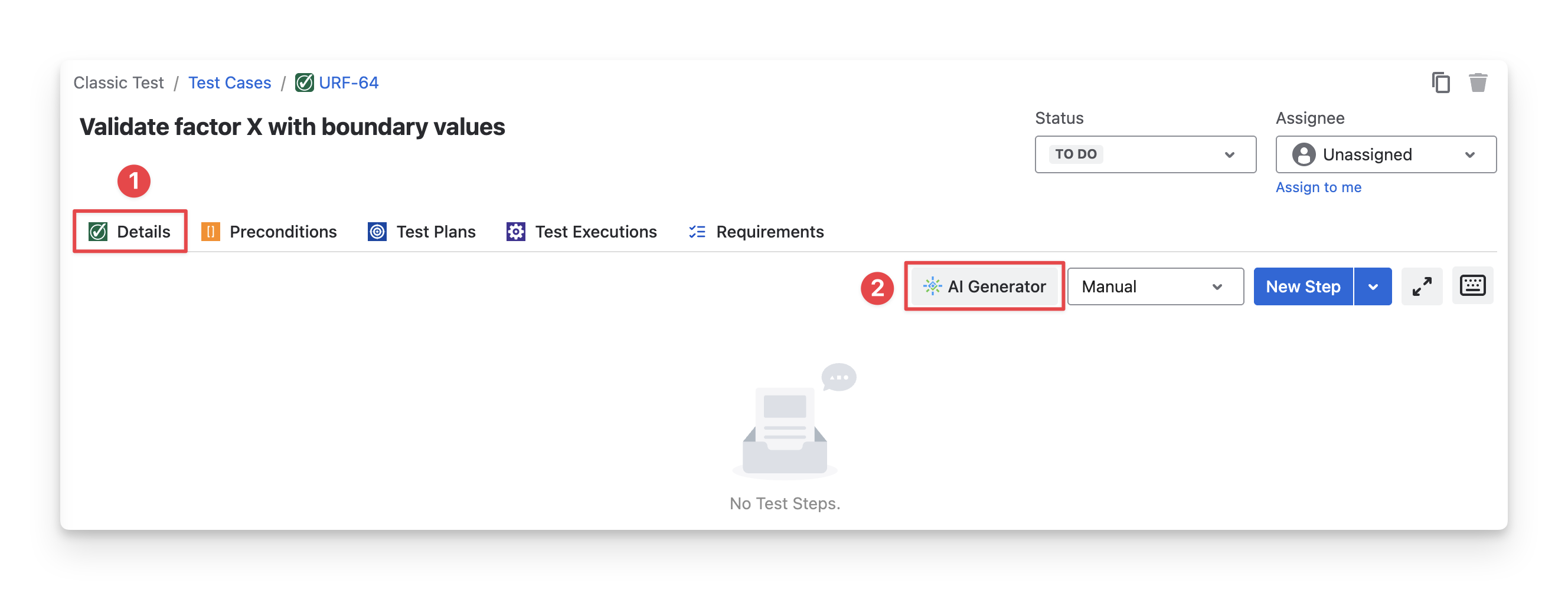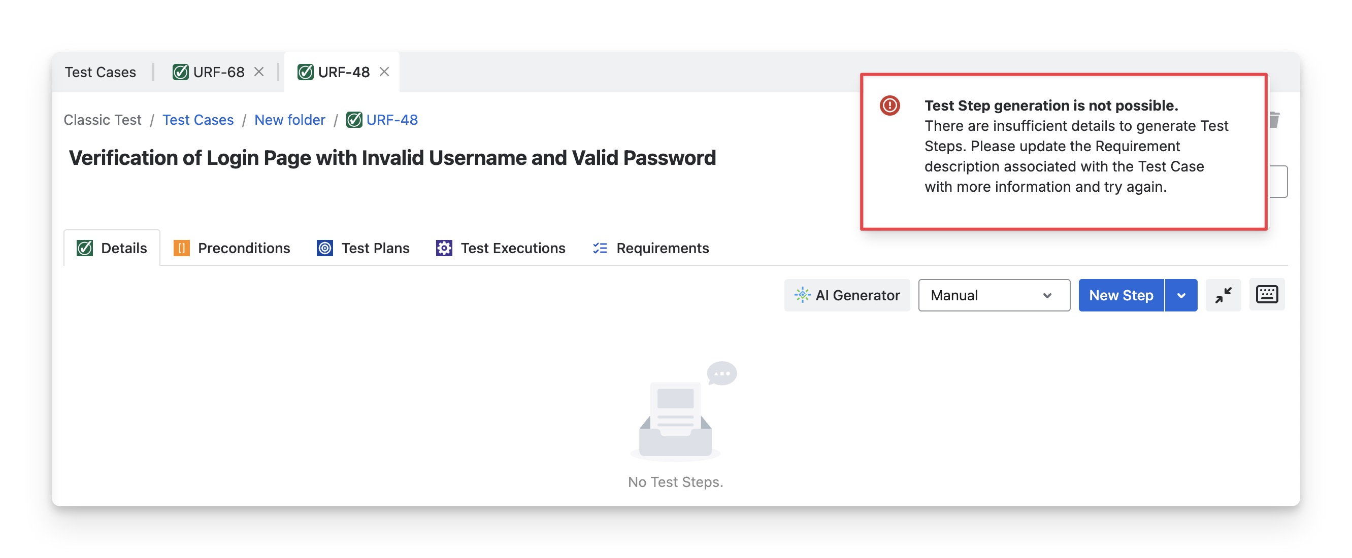 After meeting all prerequisites, the AI Generator will suggest test steps for this test case.