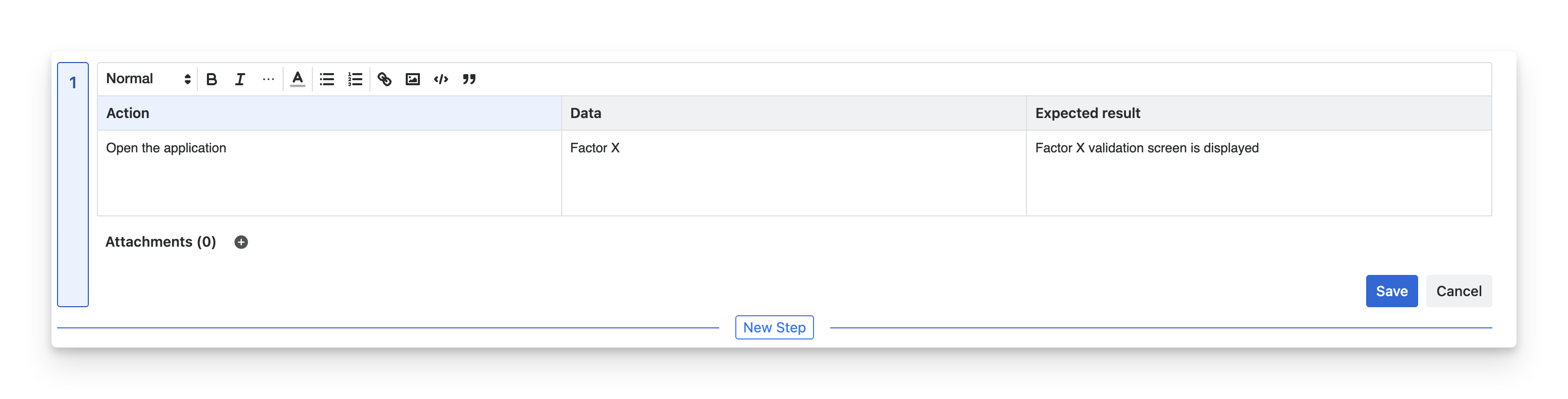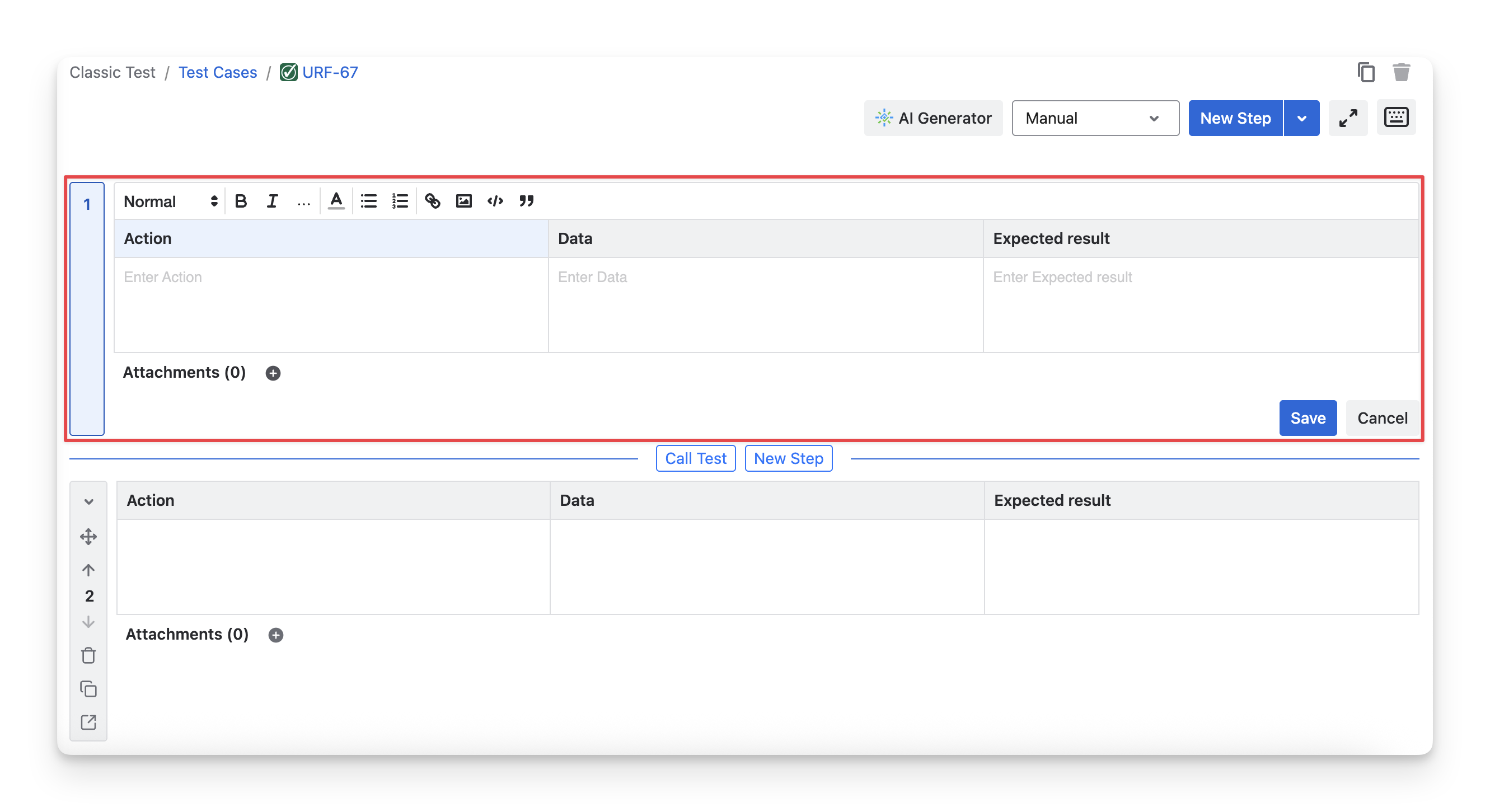 You can enter your test steps, add necessary attachments, and reorder them to match your testing flow.