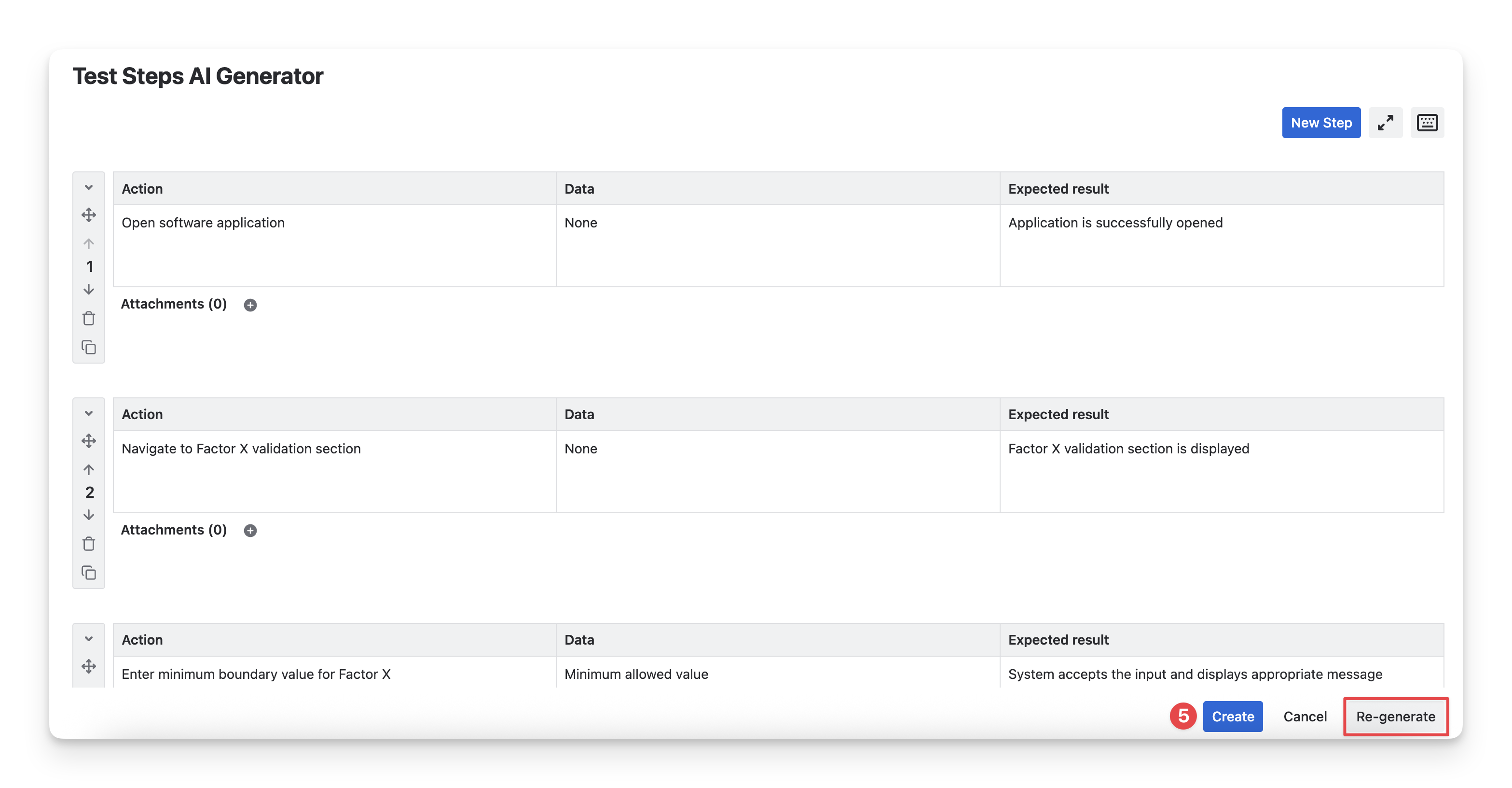 You can ask the AI Generator to re-generate the test steps and modify them until they match your preferences. Then, you can click the “Create” button to generate these test steps.