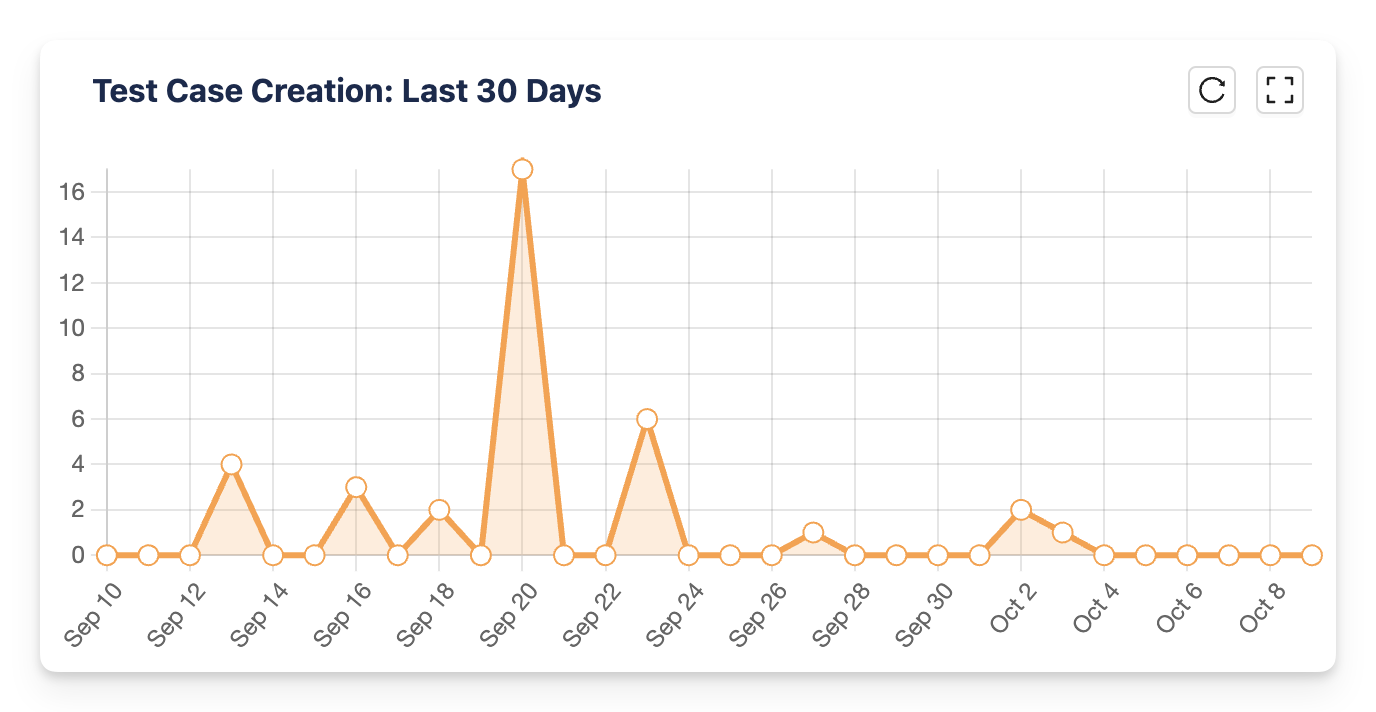 Hover on line chart: Displays the exact number of test cases created on each specific date, giving more granular insights into testing activity.