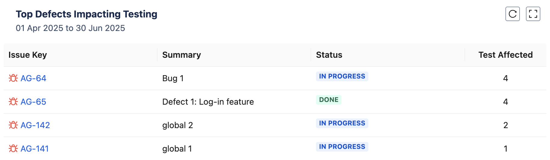 Useful for: Identifying defects blocking tests, and improving transparency for teams.