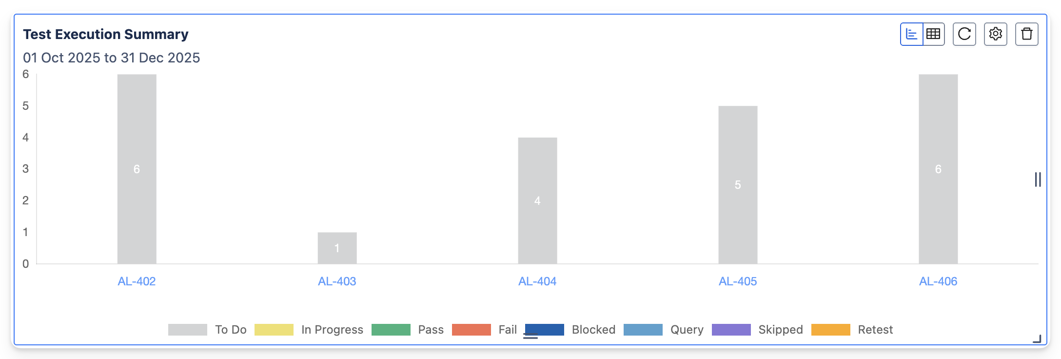 Note: The "Failed" count reflects the number of Test Executions where a test case’s status changes from "To Do" to "Failed" for the first time.