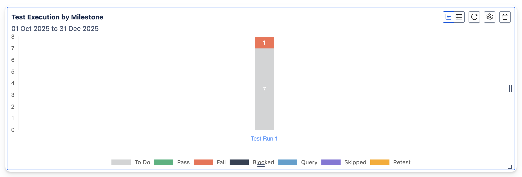 Note: The "Passed" count reflects the number of Test Executions where a test case’s status changes from "To Do" to "Passed" for the first time.