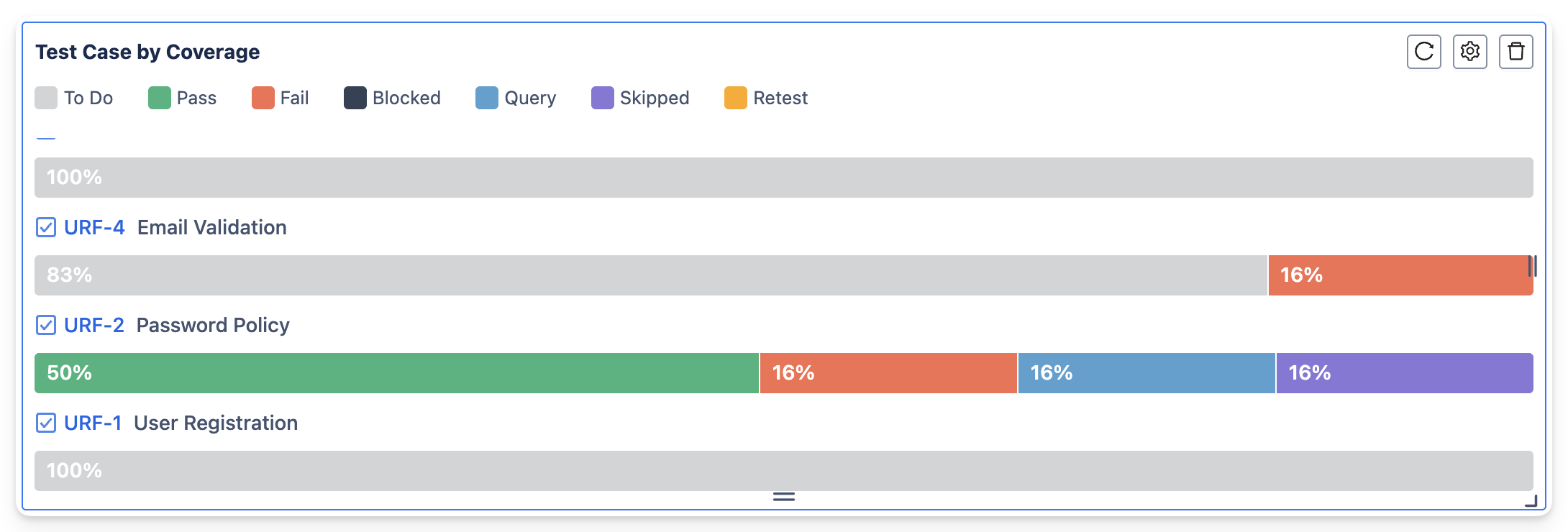 Test Coverages: Select up to 10 Requirement issues to display in the stacked chart.