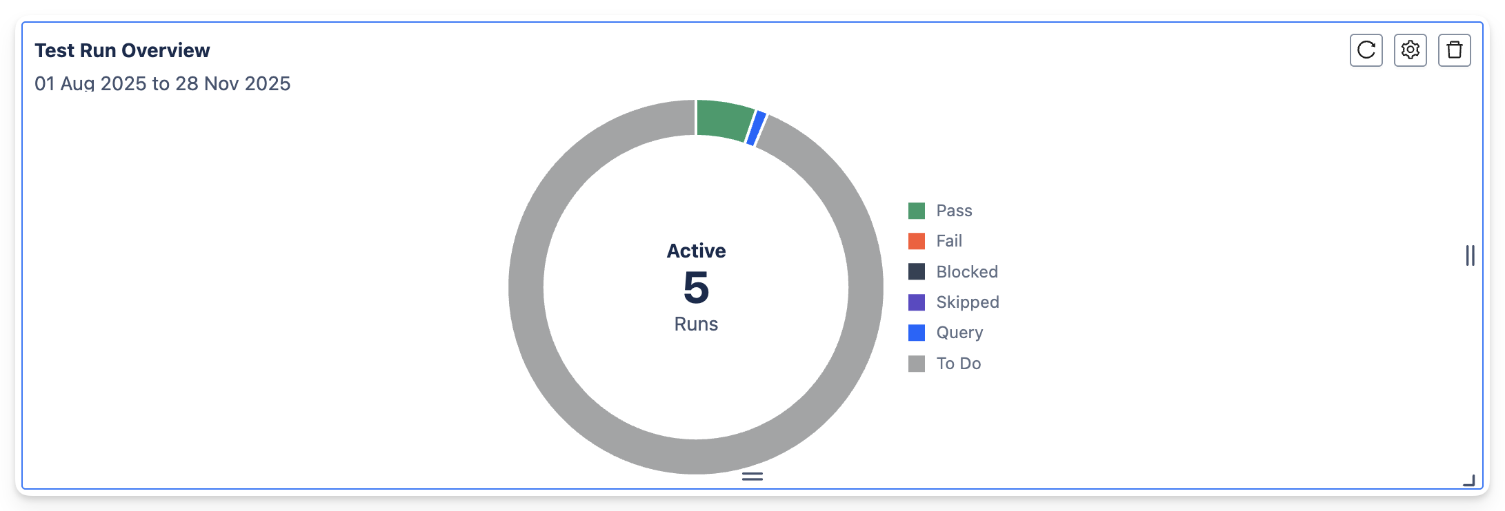 Click on the Active Run: Expands the chart to show the percentage of test runs that have passed, along with a breakdown of test run statuses (e.g., Passed, Failed, Skipped).