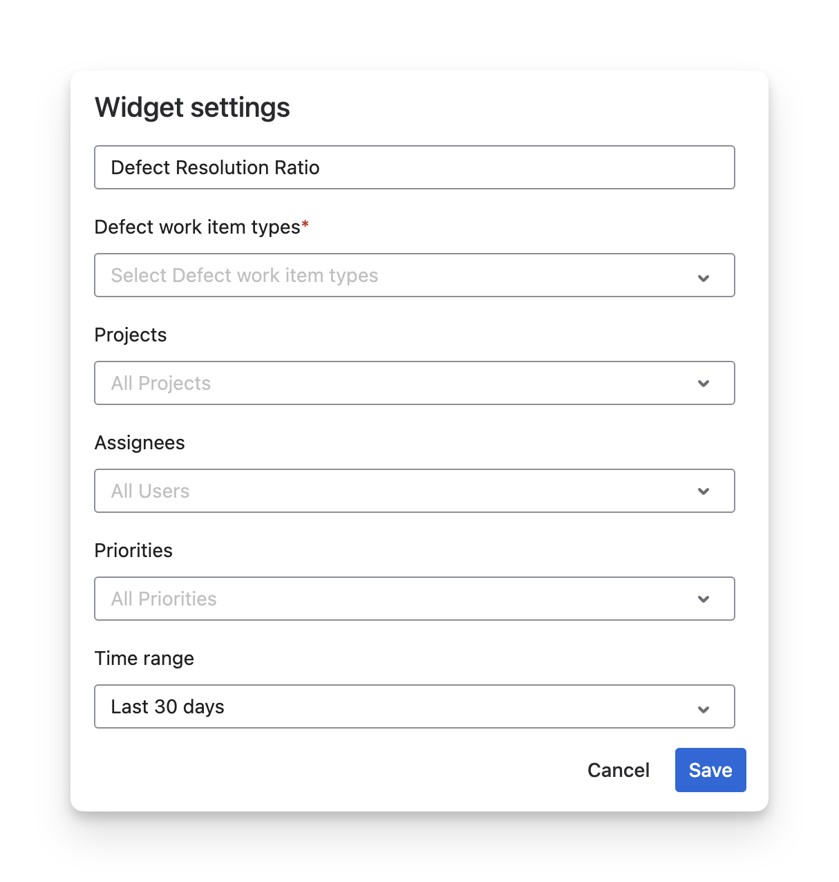 Rename the widget to match your reporting purpose (e.g., Defect Fix Rate, Bug Closure Trend).