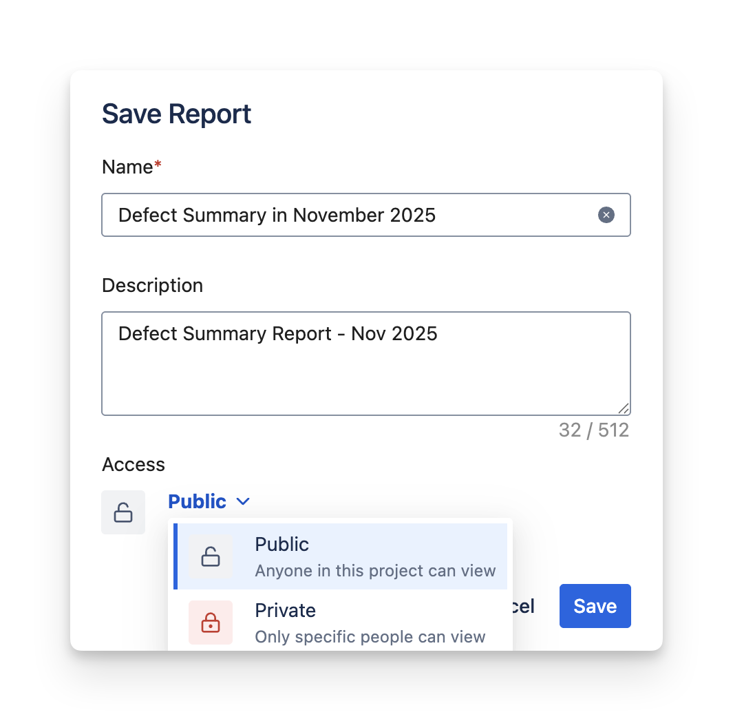 After modifying the Defect Summary Report, click the Save button. When you reopen the report, your settings will restore automatically, so you won’t need to configure it again.
