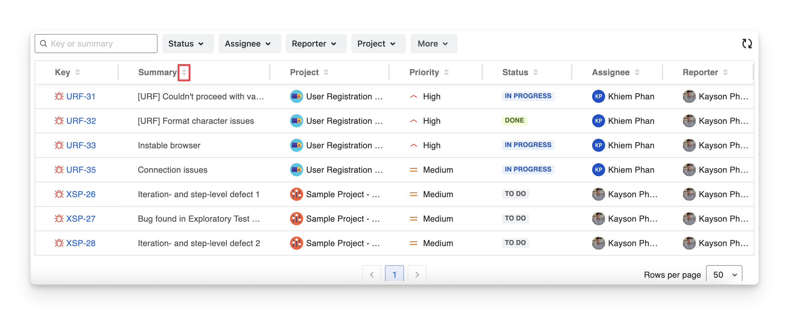 Key | The Jira unique identifier for each defect. This helps you quickly locate, reference, and track a specific issue |