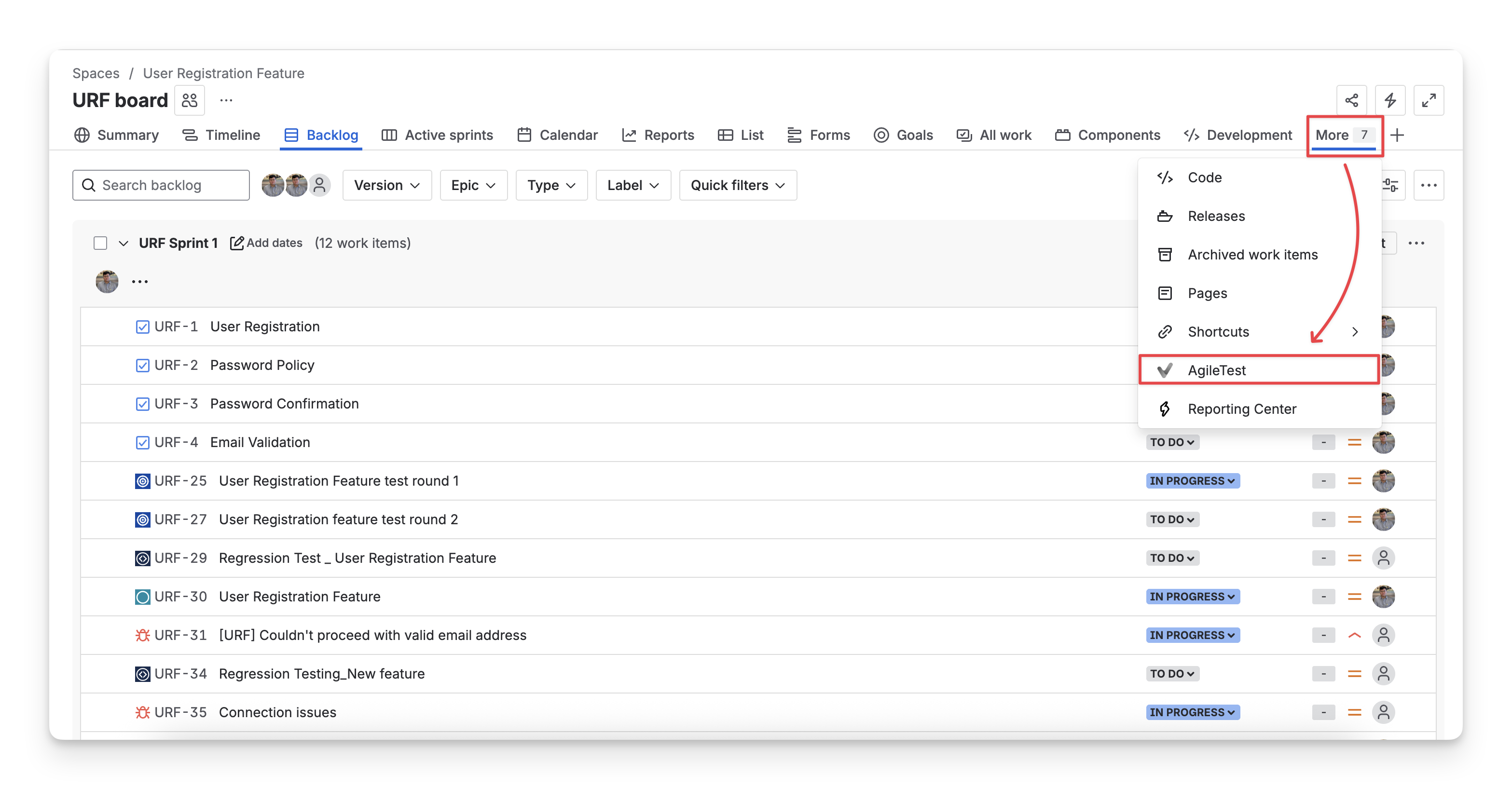 Access AgileTest via Jira menu panel