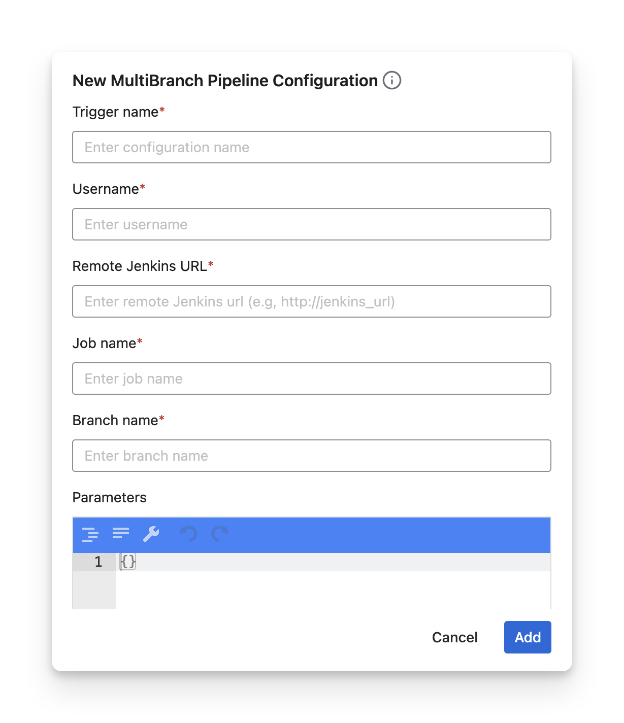 Parameters: This field allows you to add custom variables when triggering a request. It's generally not required, but in some special cases, it can be useful for additional setups in your Jenkins jobs.
