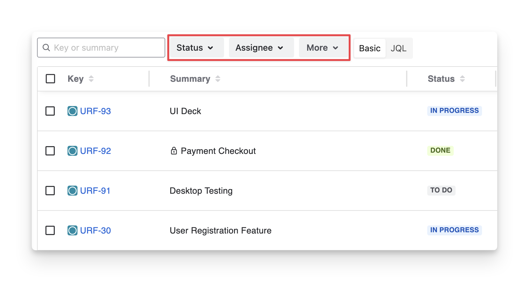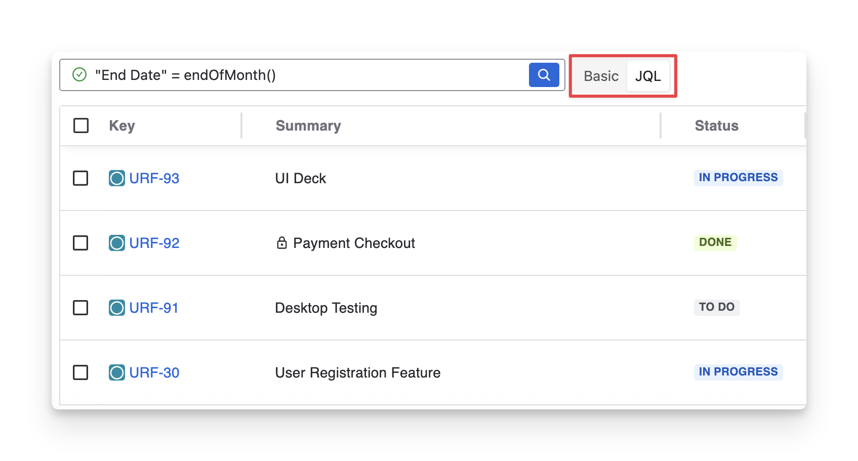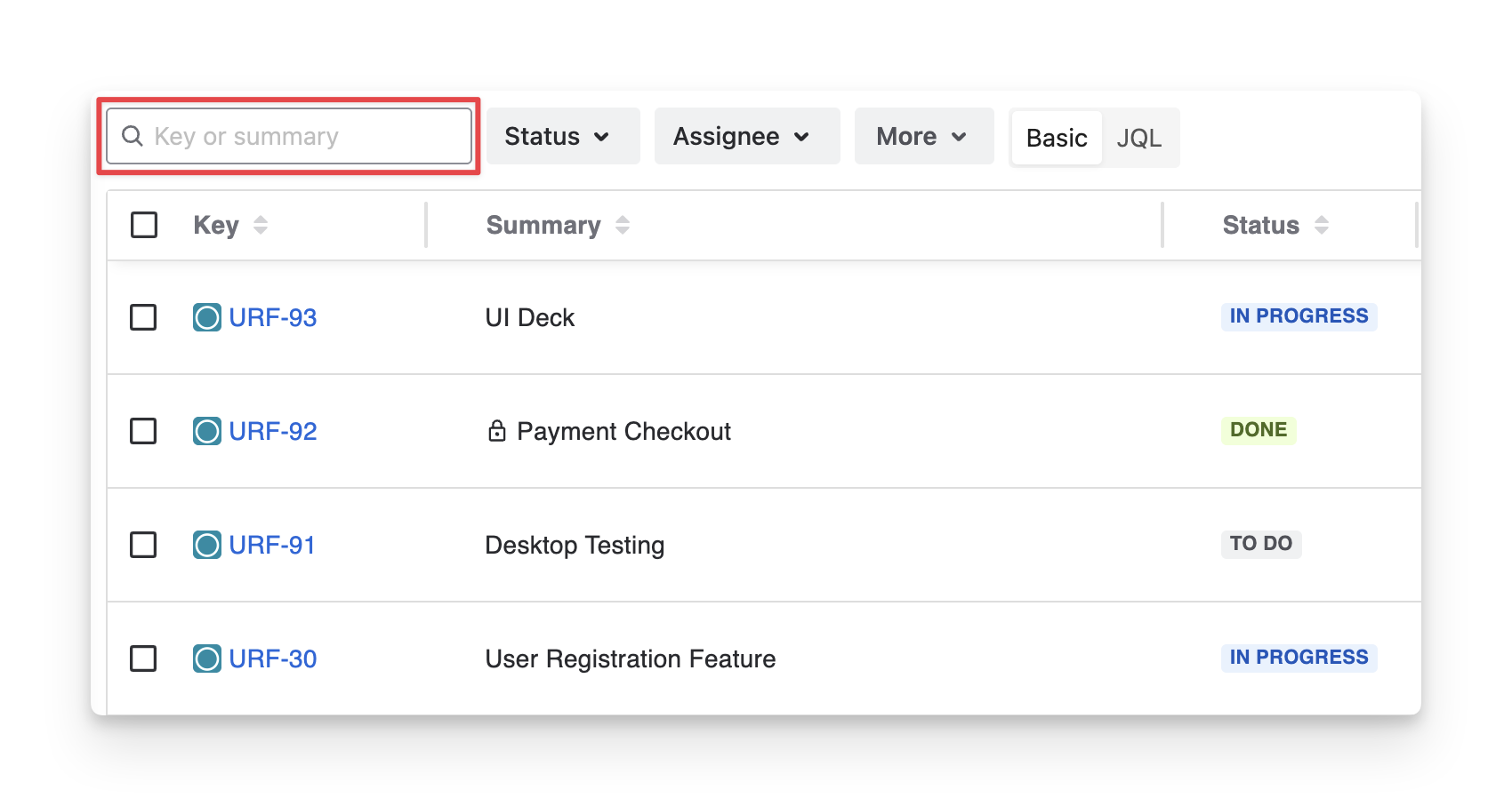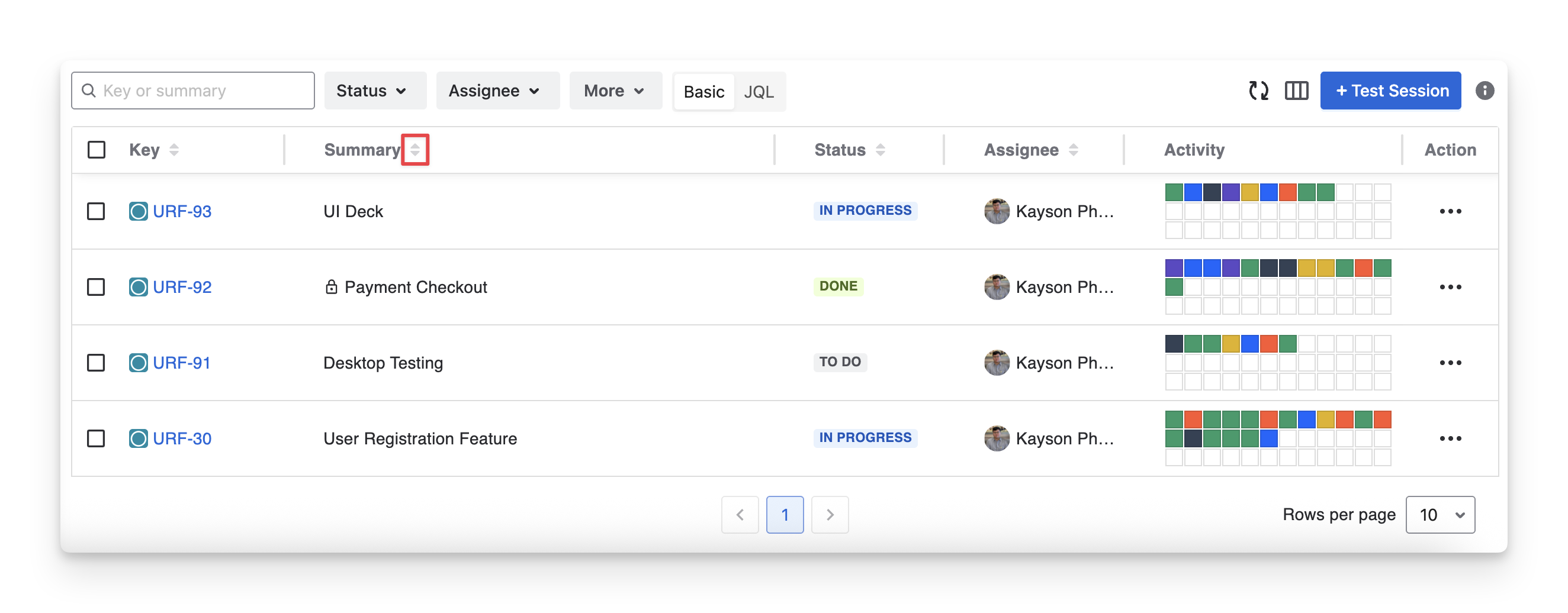 Key | A Jira unique identifier for the exploratory test, used to track and link it. |