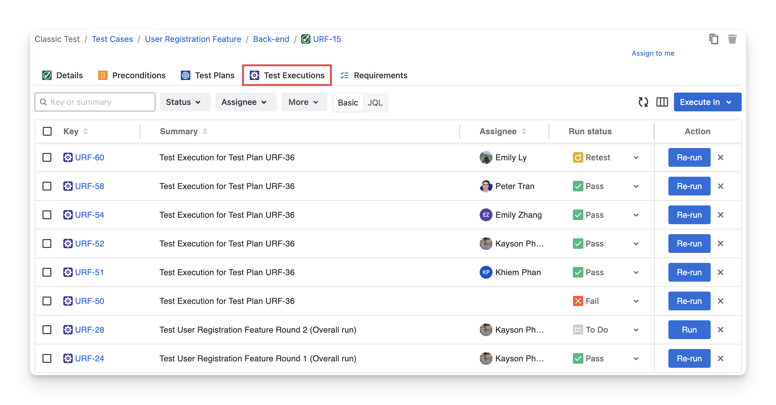 In the Test Executions tab, you can view which test executions include this test case. This helps you track where the test case has been run, monitor its execution status, and review test results across different executions.