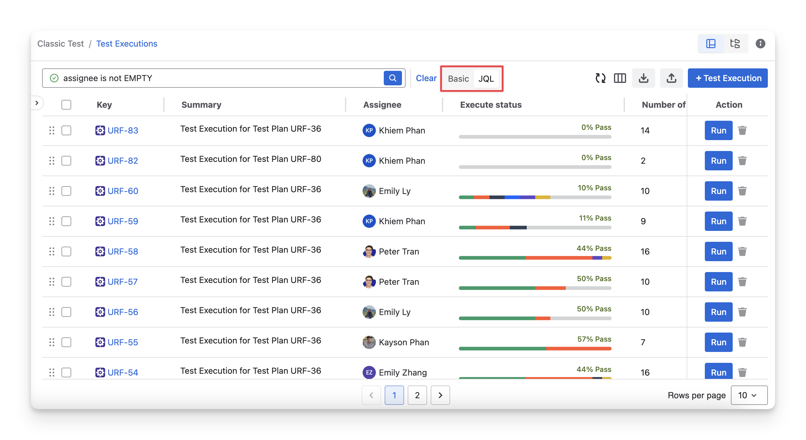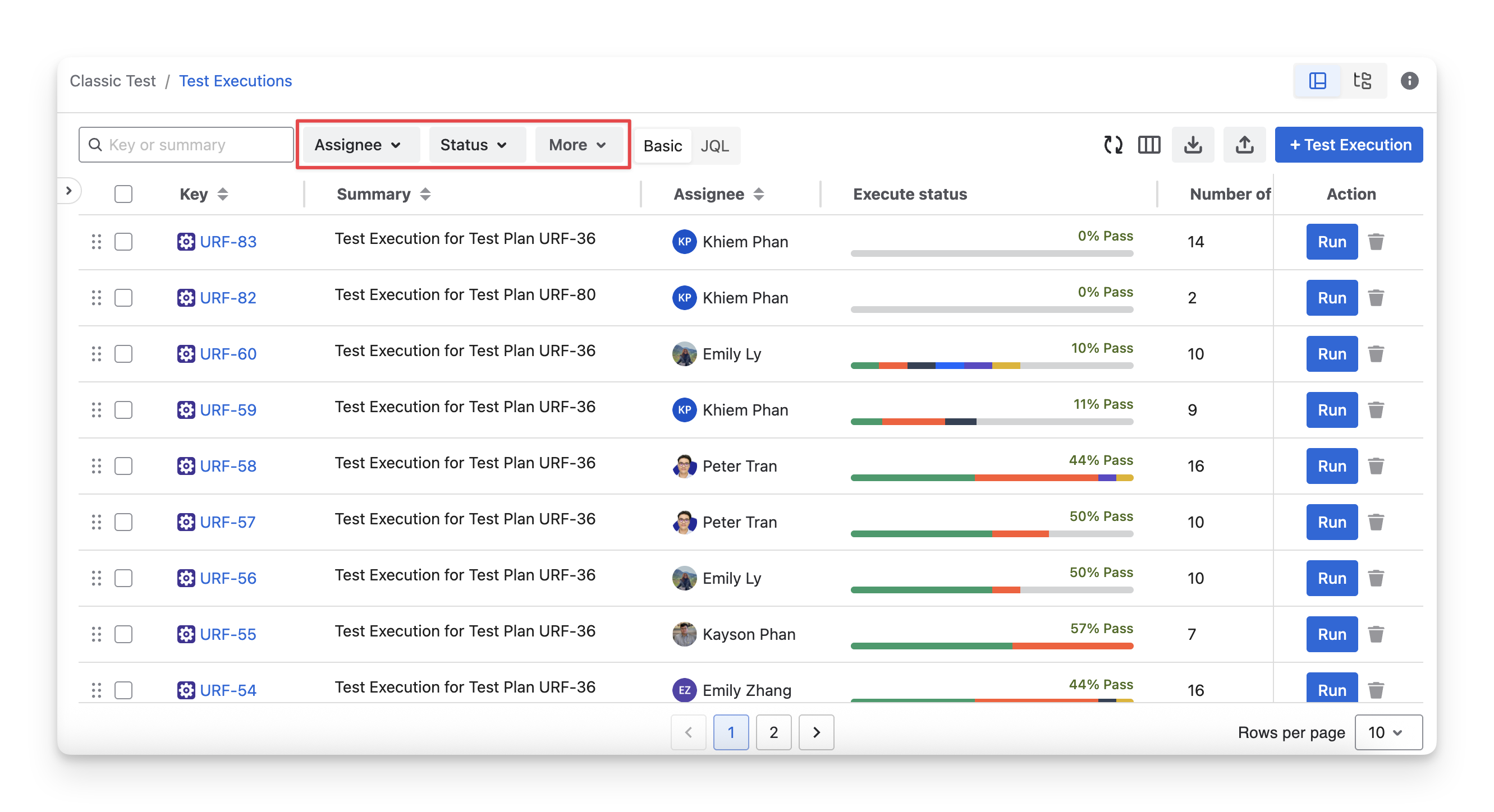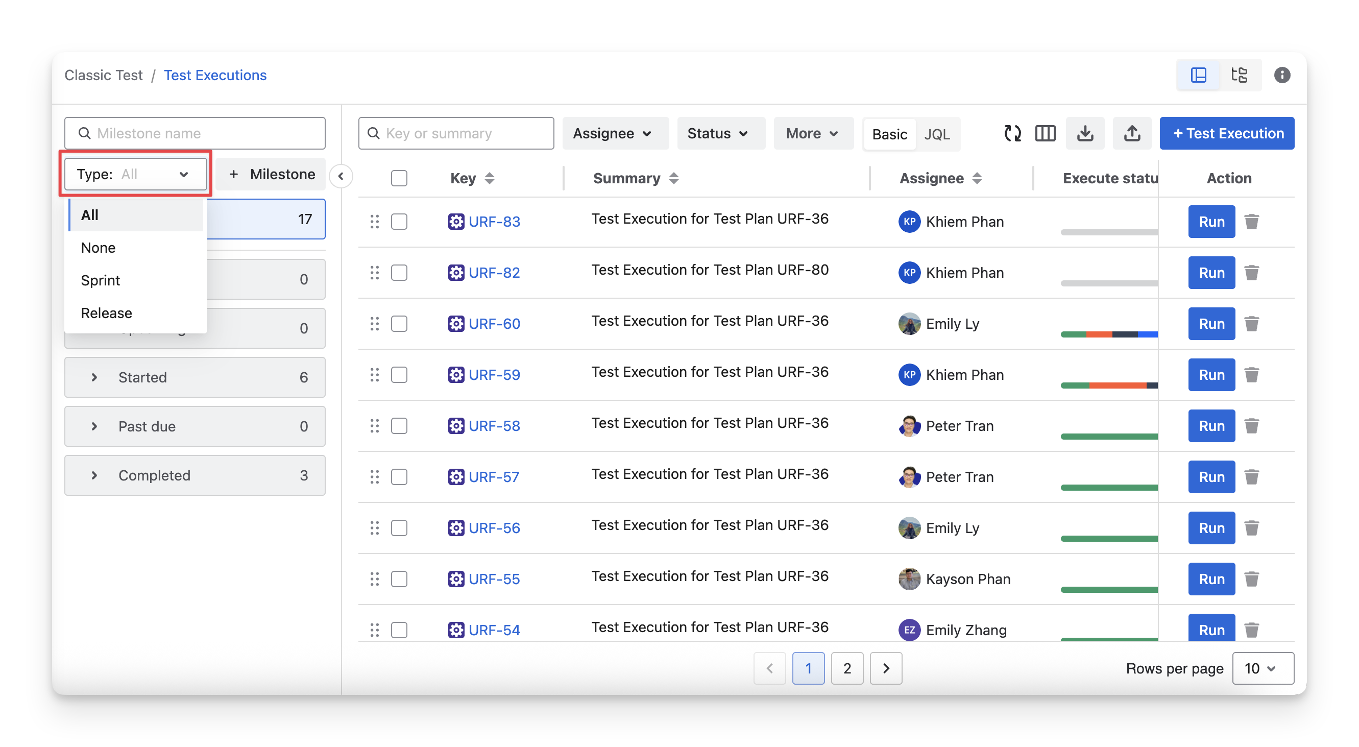 Assignee: your team members assigned to test executions.