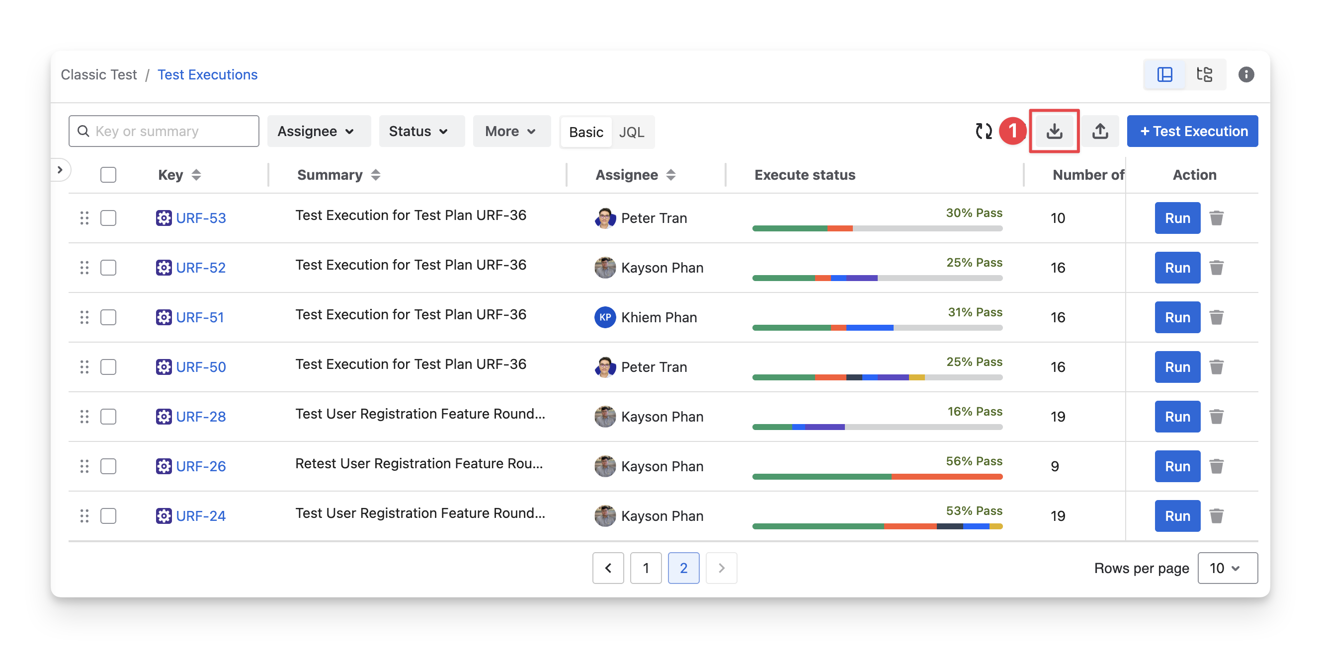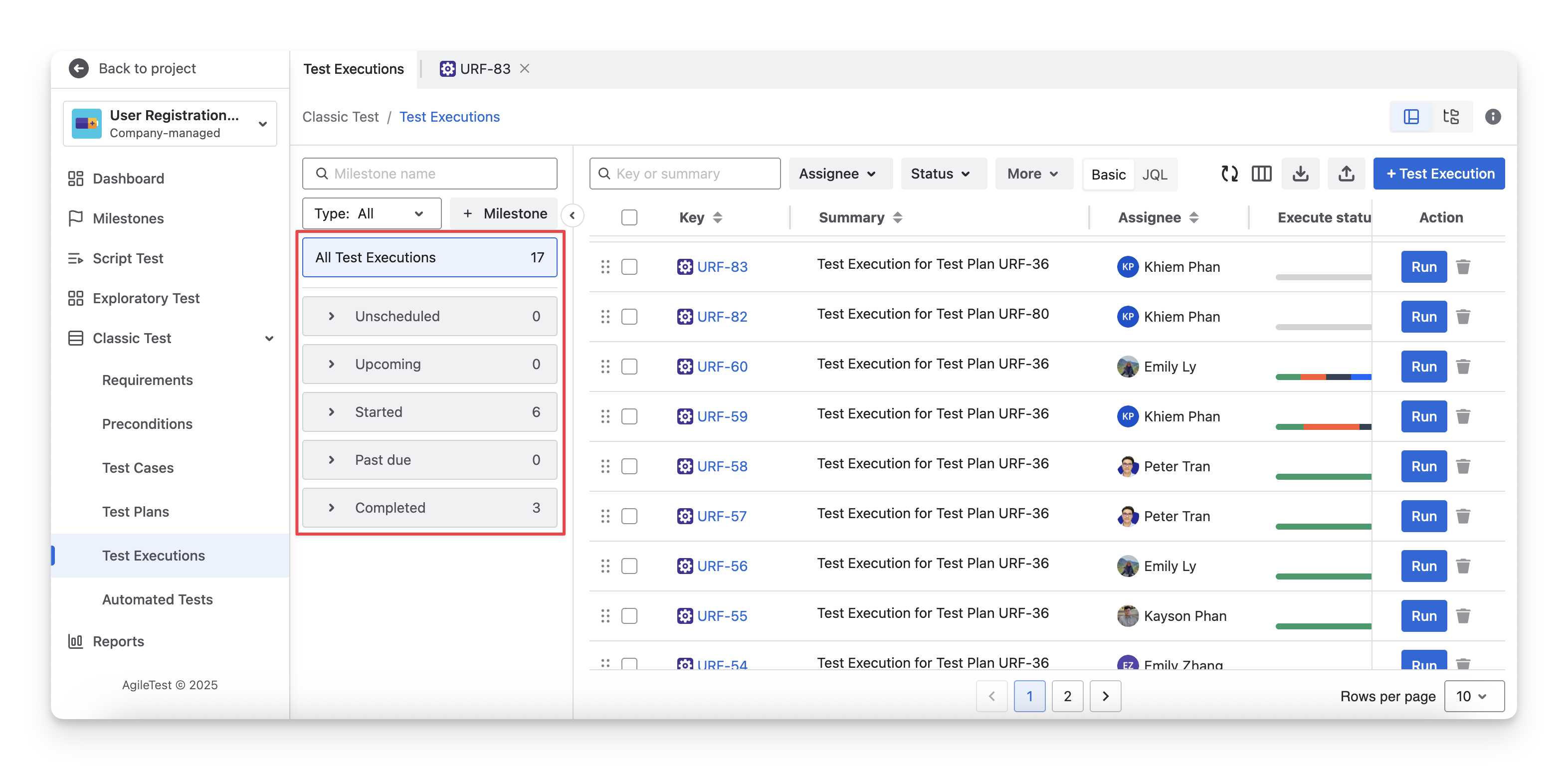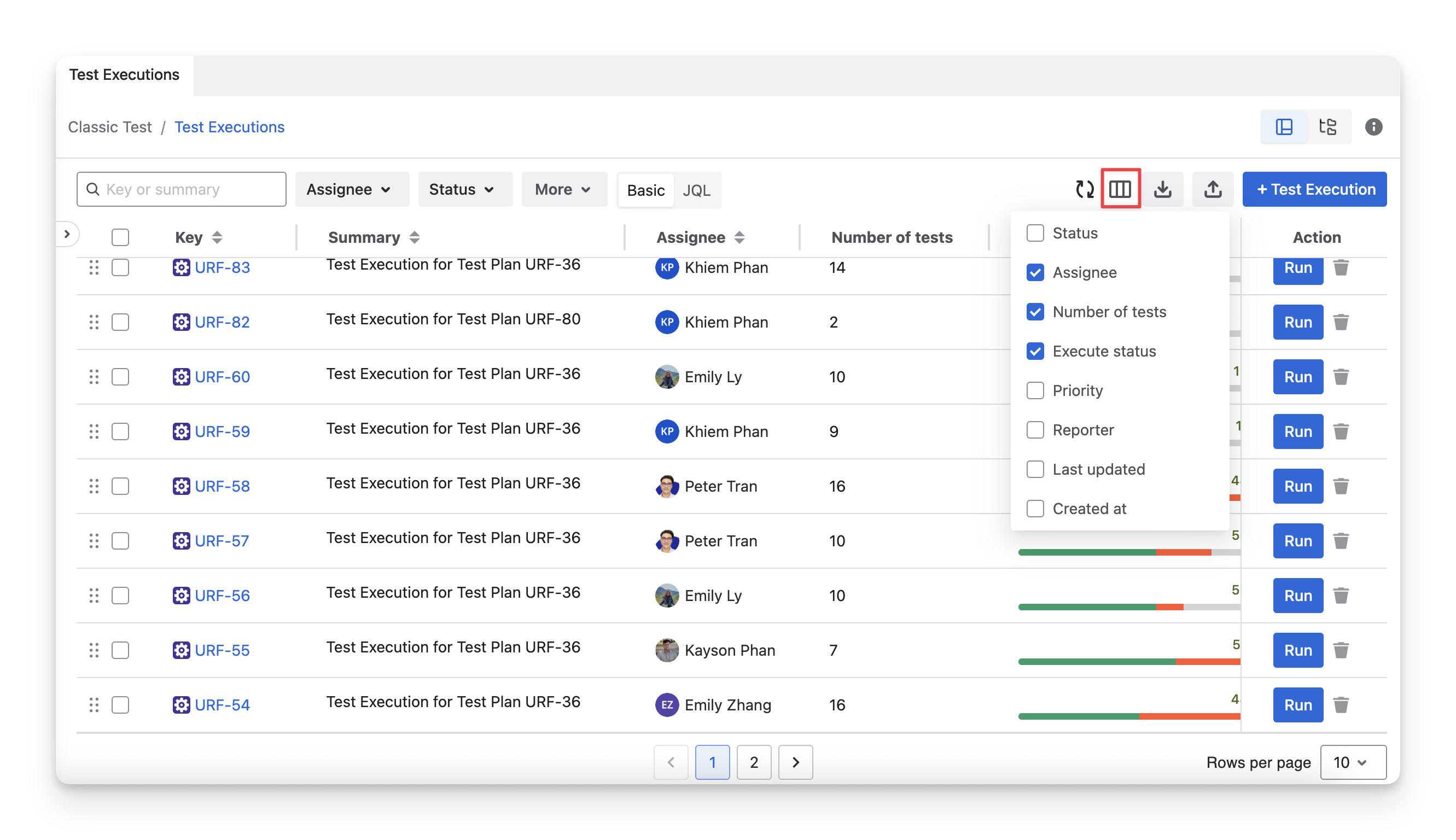 Assignee: your team members assigned to test executions.