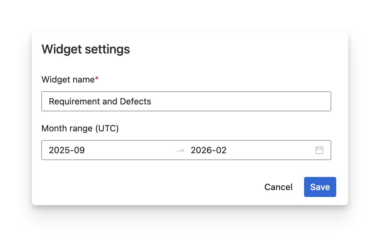 The Requirements and Defects widget is useful when QA teams need to understand how defects evolve in relation to requirements over time in your current project. This widget visualizes the trend of created requirements and reported defects across the selected time range, helping teams see whether new requirements are introducing additional defects or if defect volume is decreasing as testing stabilizes. This widget helps you to: