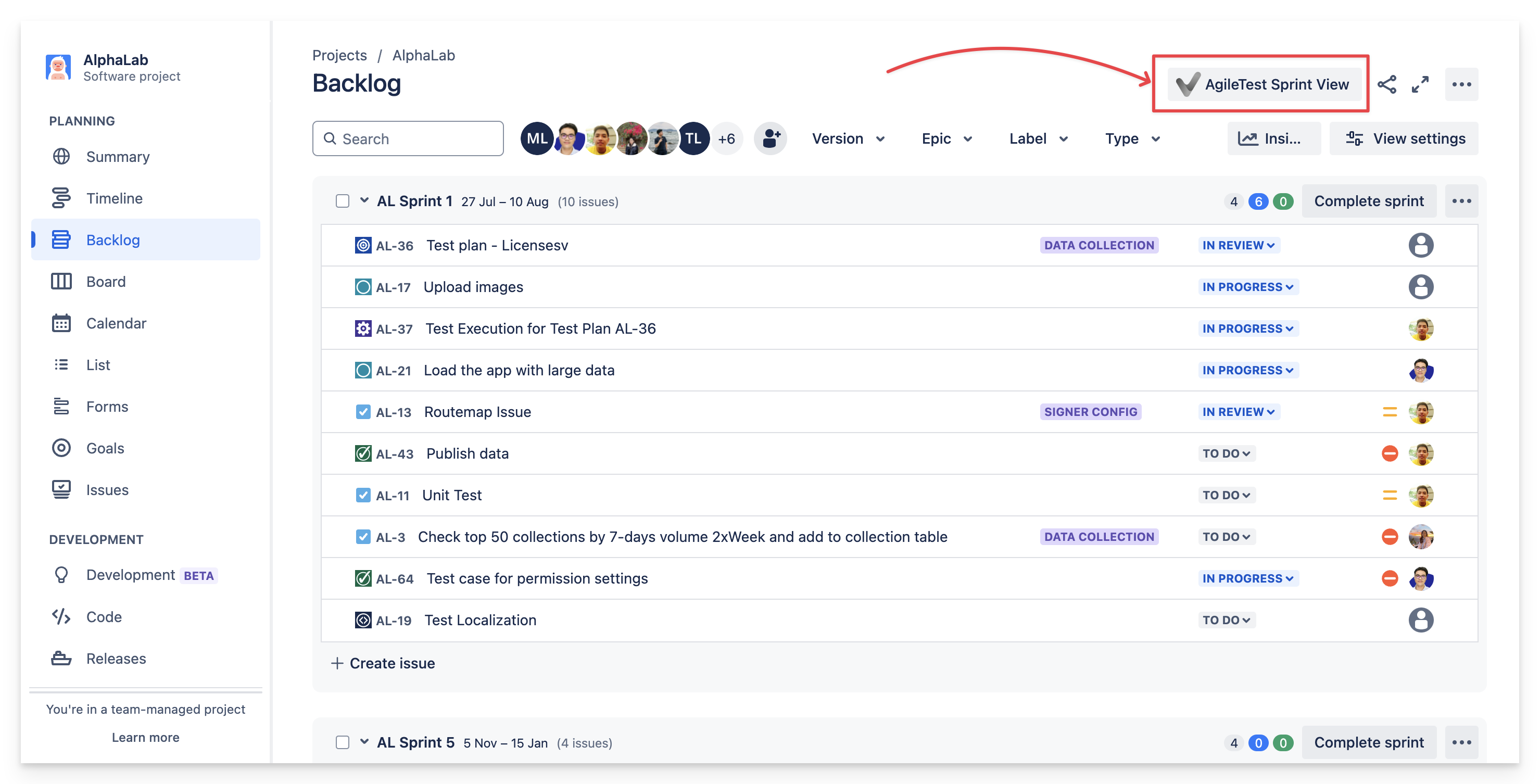 If users are in AgileTest view, go back Board (Back to project) section (Left-hand side panel), and choose AgileTest Sprint View.