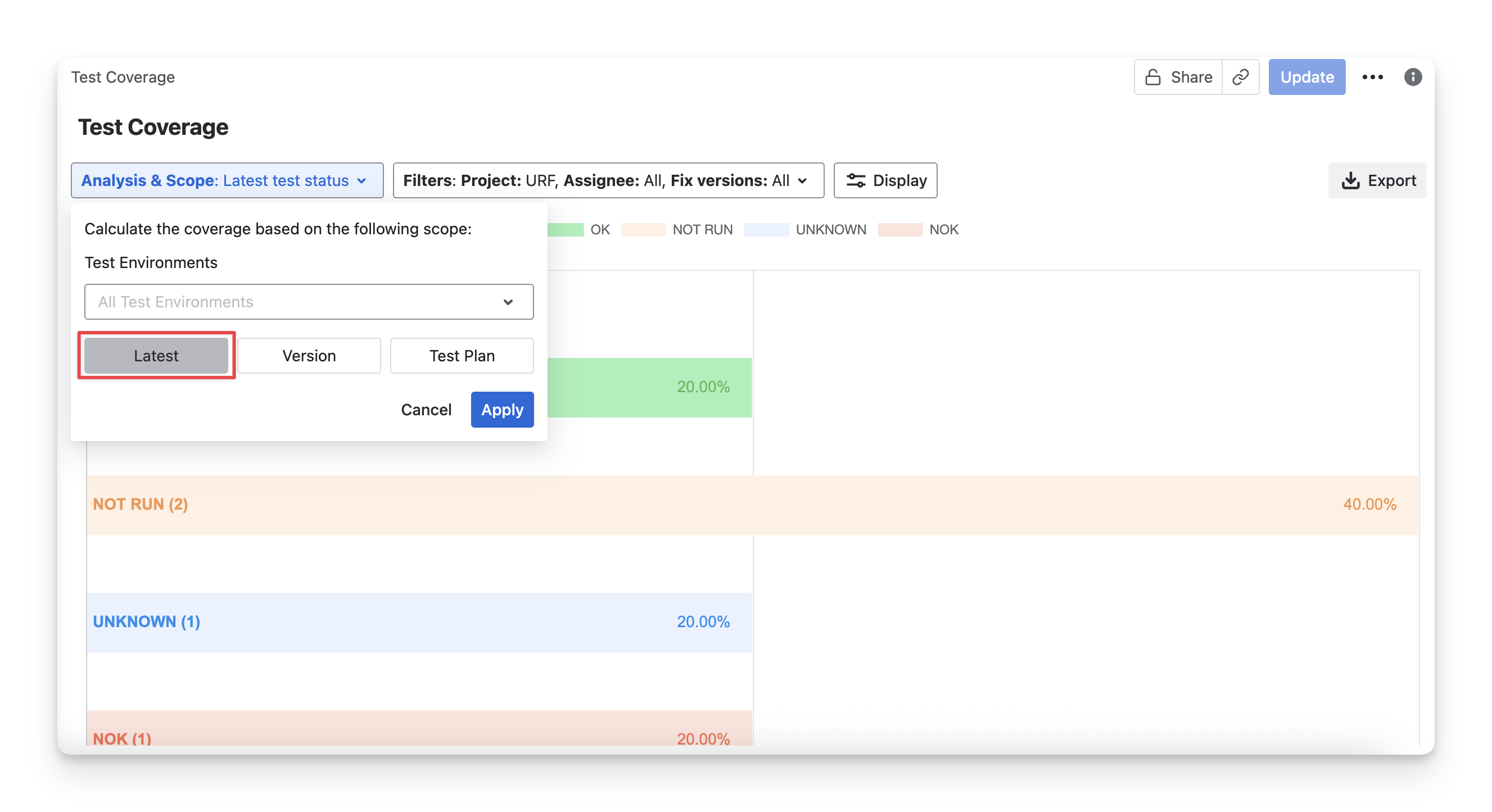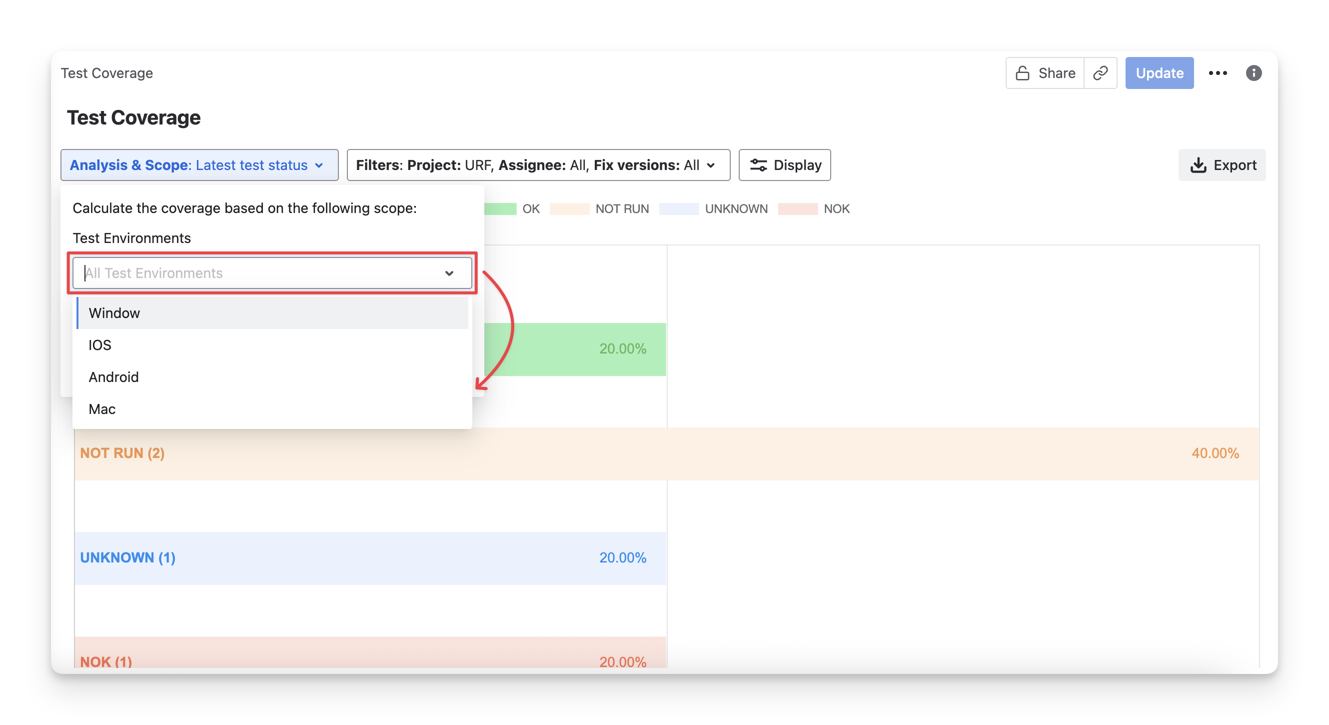 Test Environment: Only calculate the status from test cases that have been executed in a specific testing environment.