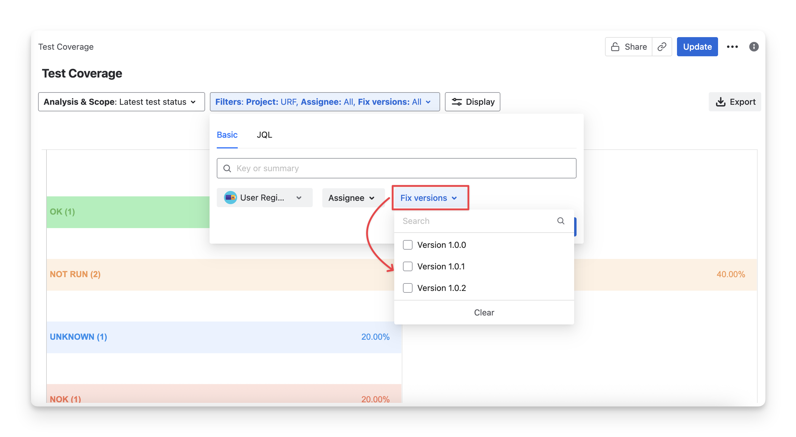 Version: Only calculate status from test cases associated with a specific Jira fix version.