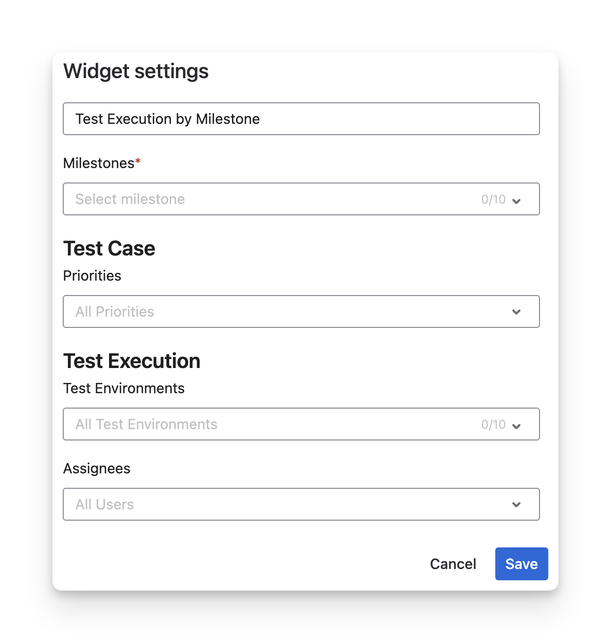The Test Execution by Milestone widget is useful when QA teams need to track test execution progress across different milestones in a project.