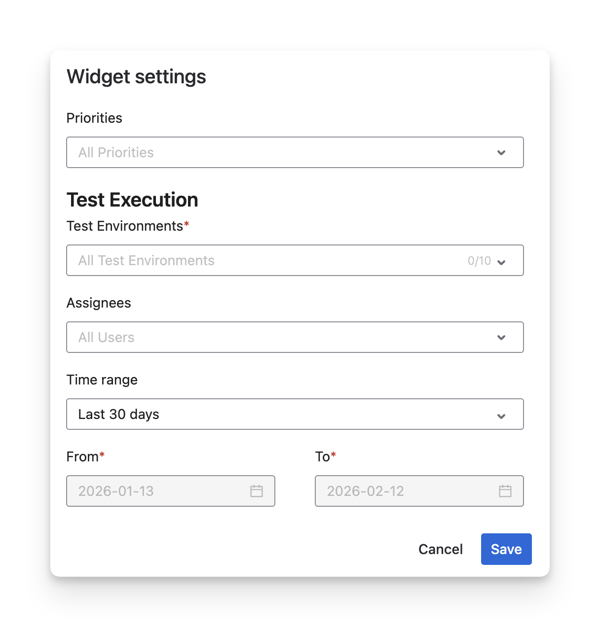 Filter by test case priorities to focus on critical or high-risk tests within each environment.