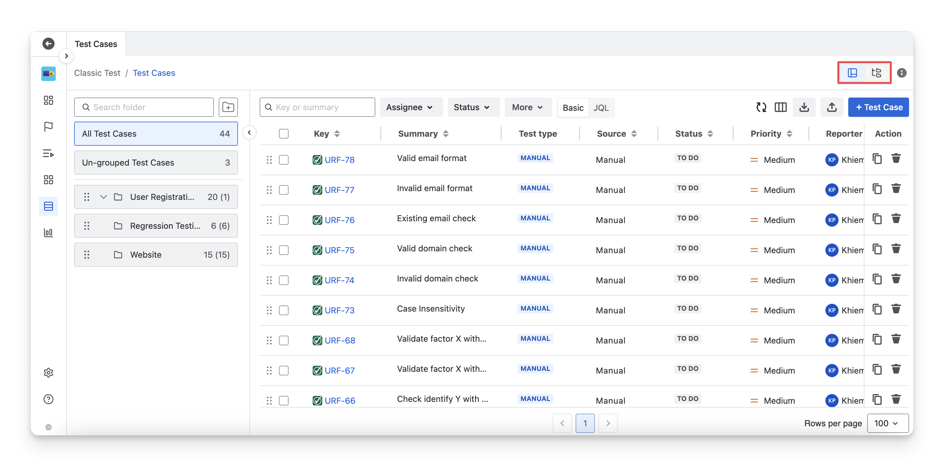 This view is best for day-to-day navigation and focused test case management.