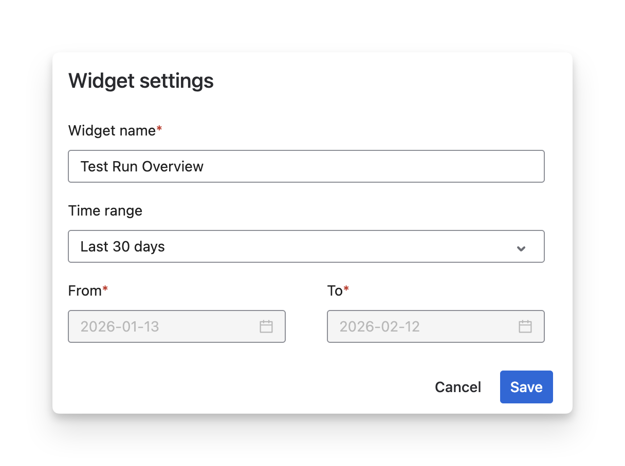 Select a time range using presets (e.g., Last 30 days) or define a custom From–To date range.