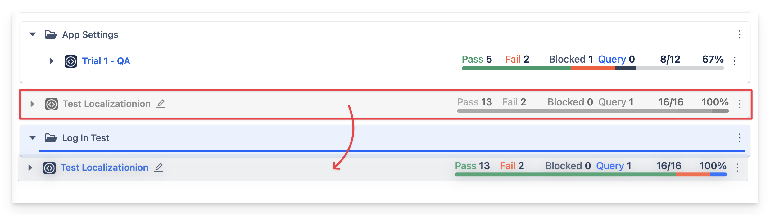 You can organize the hierarchy of your test scripts by simply dragging and dropping scripts or folders into a folder, as well as by reordering your test scripts.