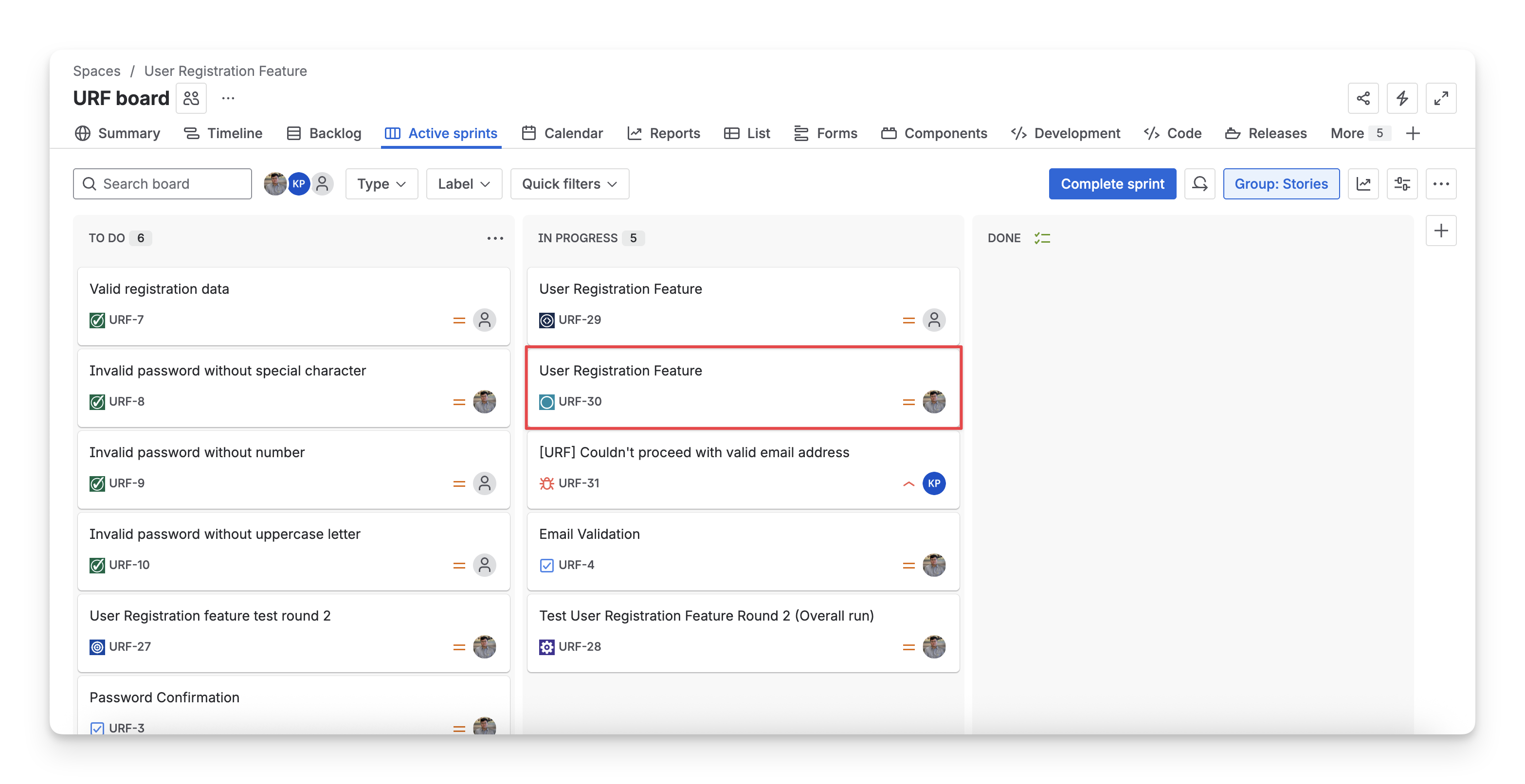On your Jira Sprint View board, you can find these exploratory tests as Jira work items.