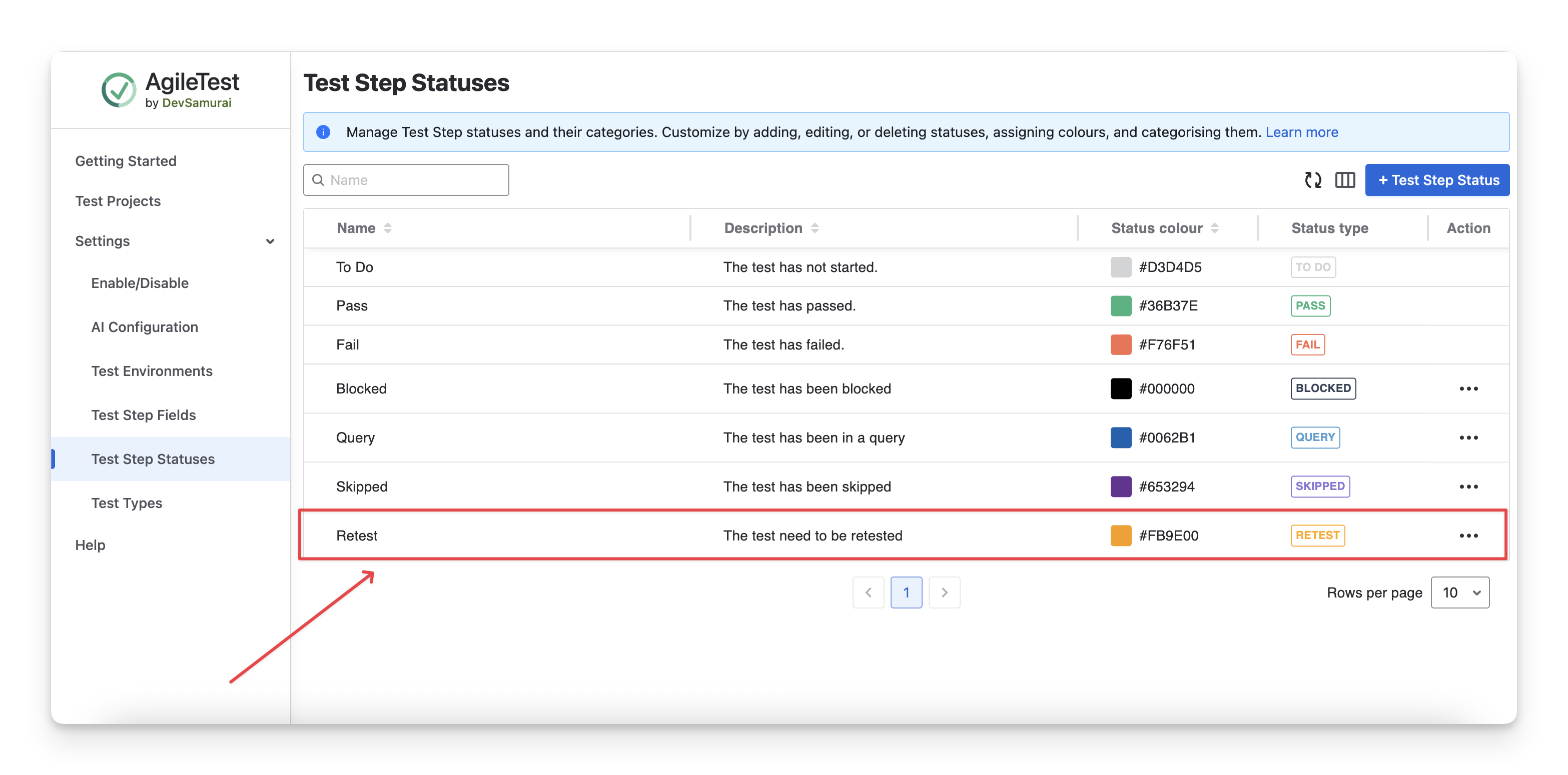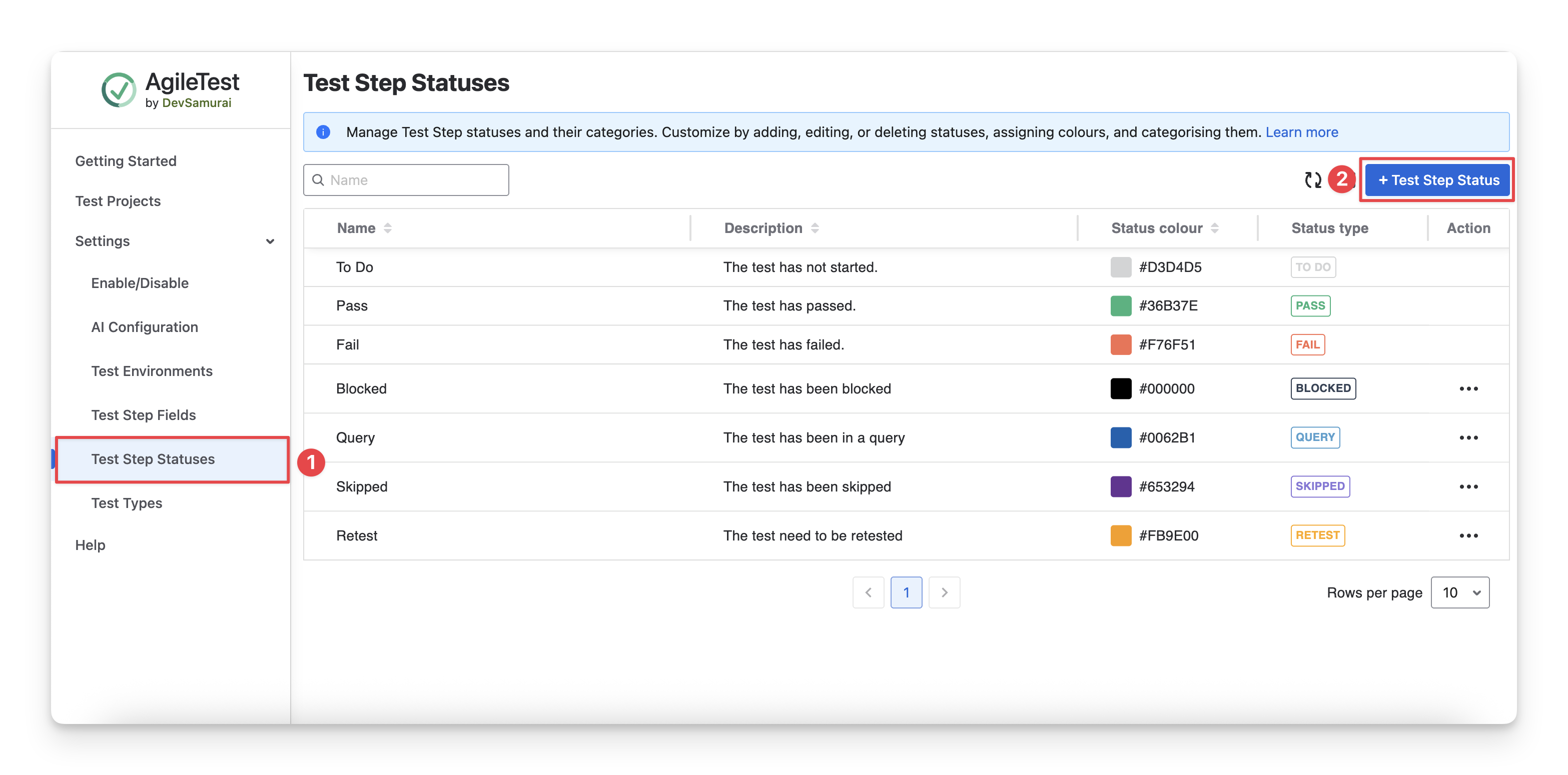 Click on the button “ + Test Step Status ”.
