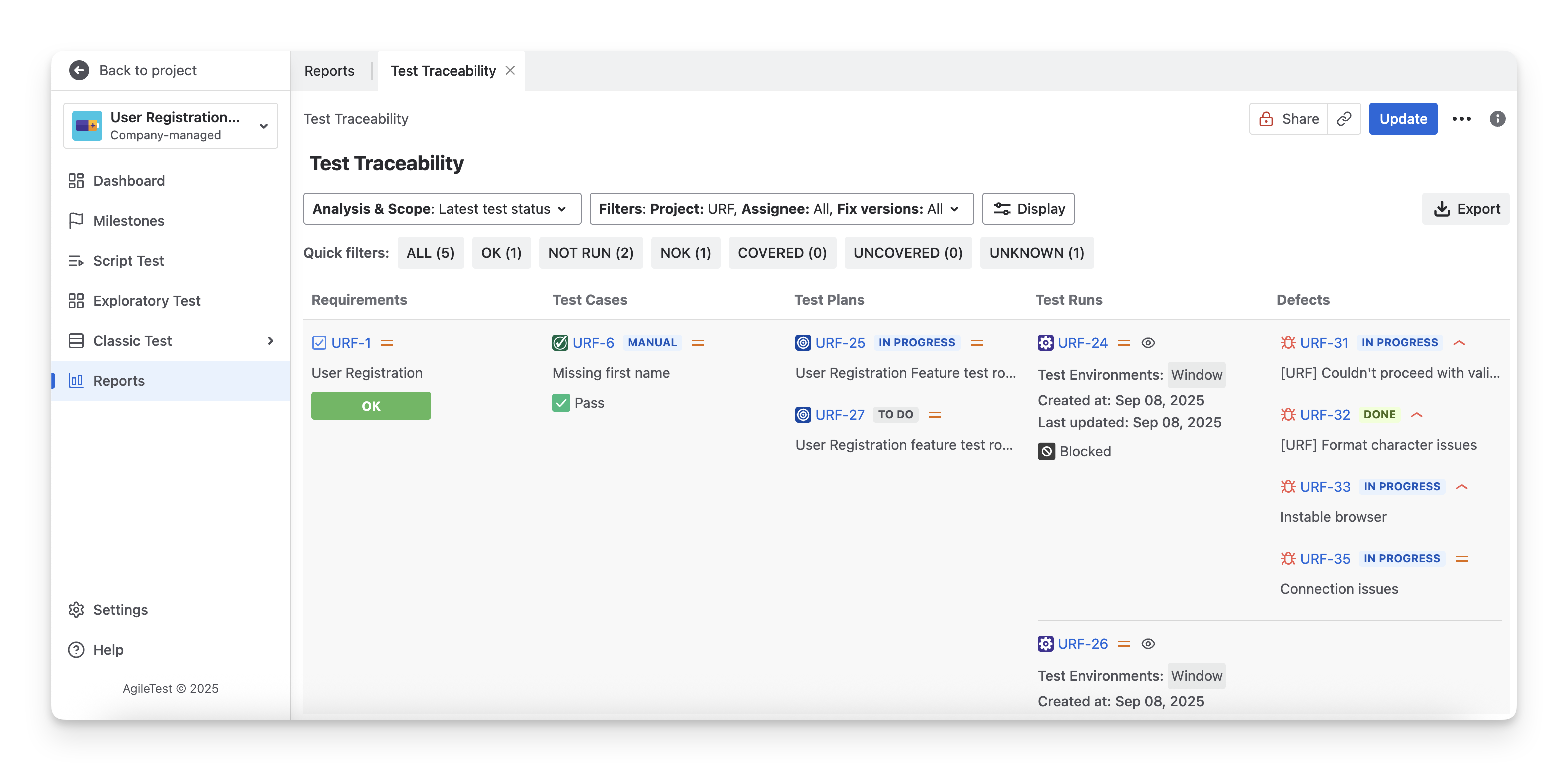 Test Traceability Report