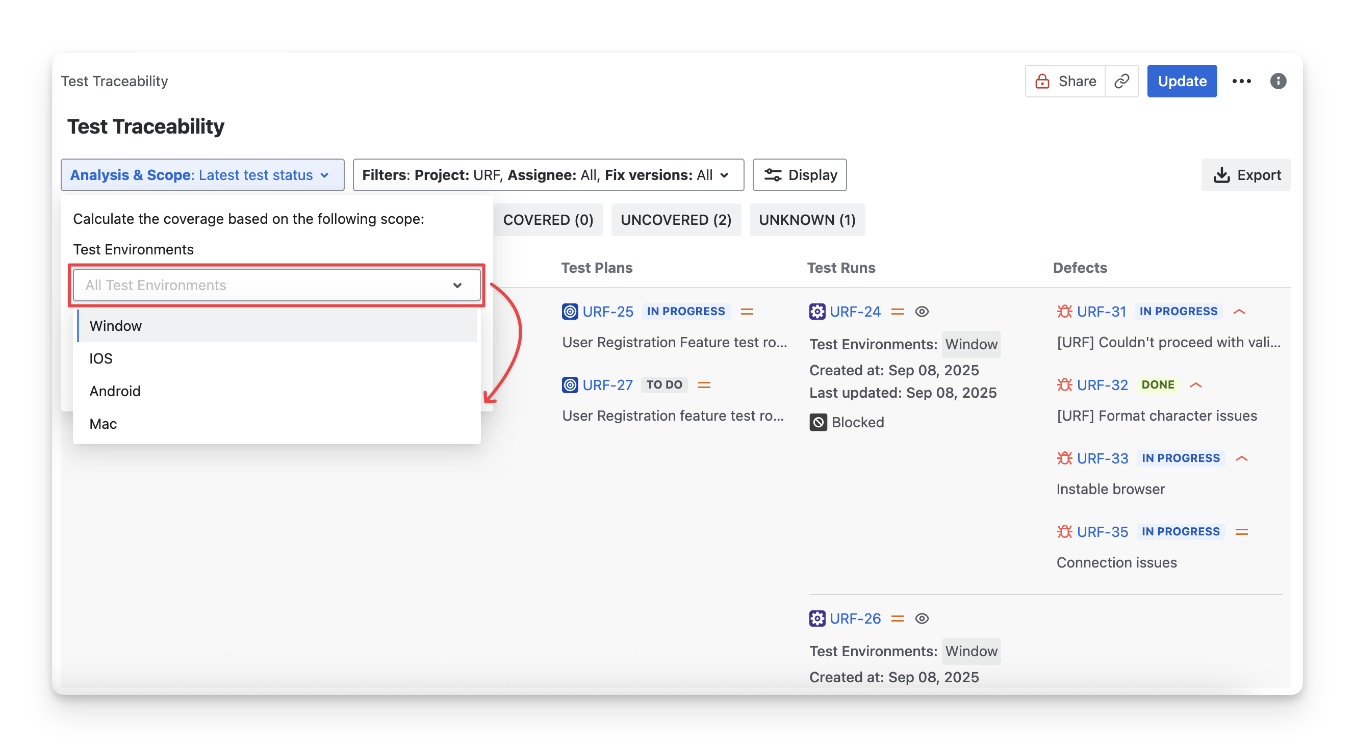 Test Environment: Only calculate the status from test cases that have been executed in a specific testing environment.