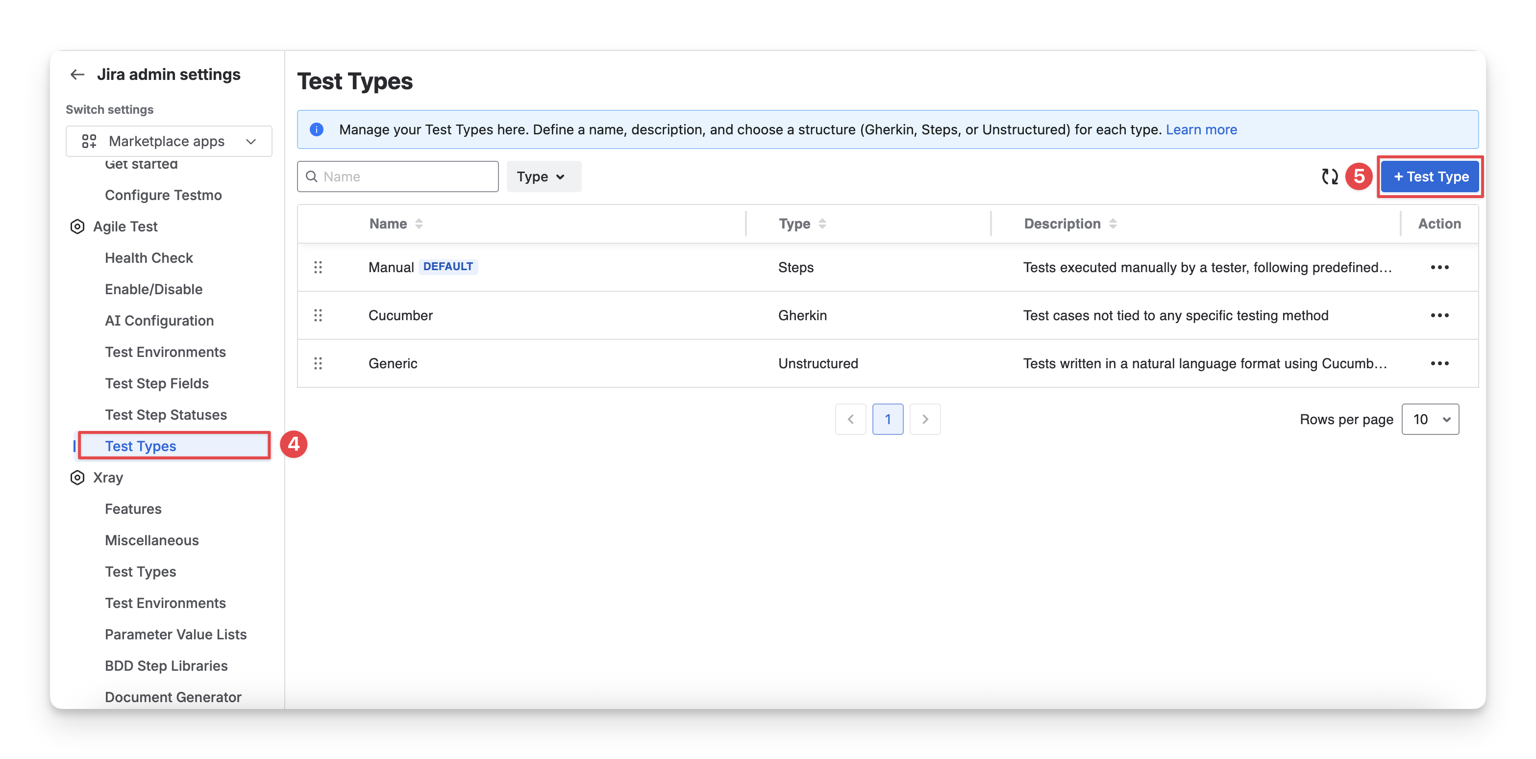 If you want to rename the existing test types to better match your team’s terminology and testing practices, you can customize their names. As a Jira admin, you can do the following: